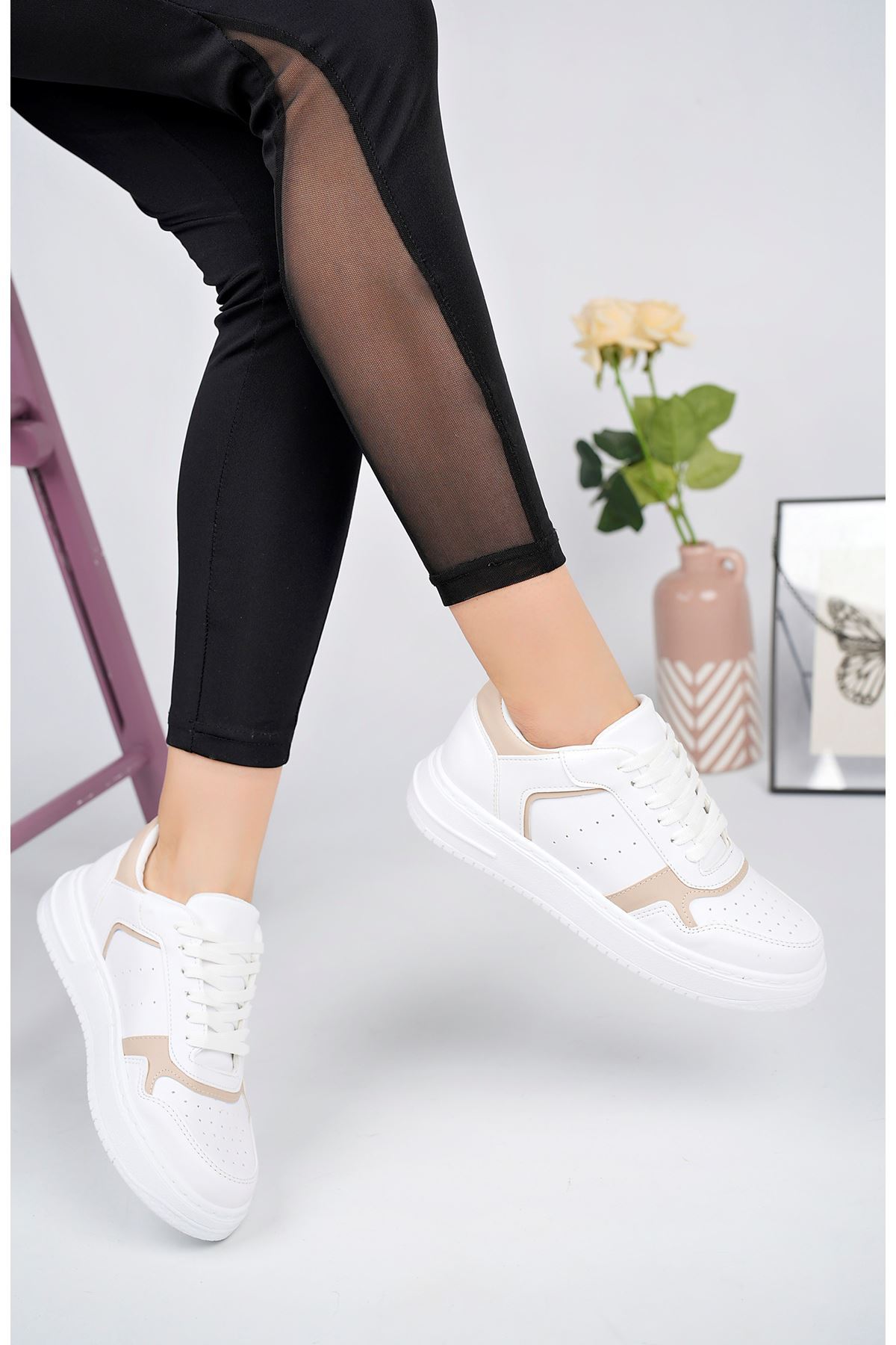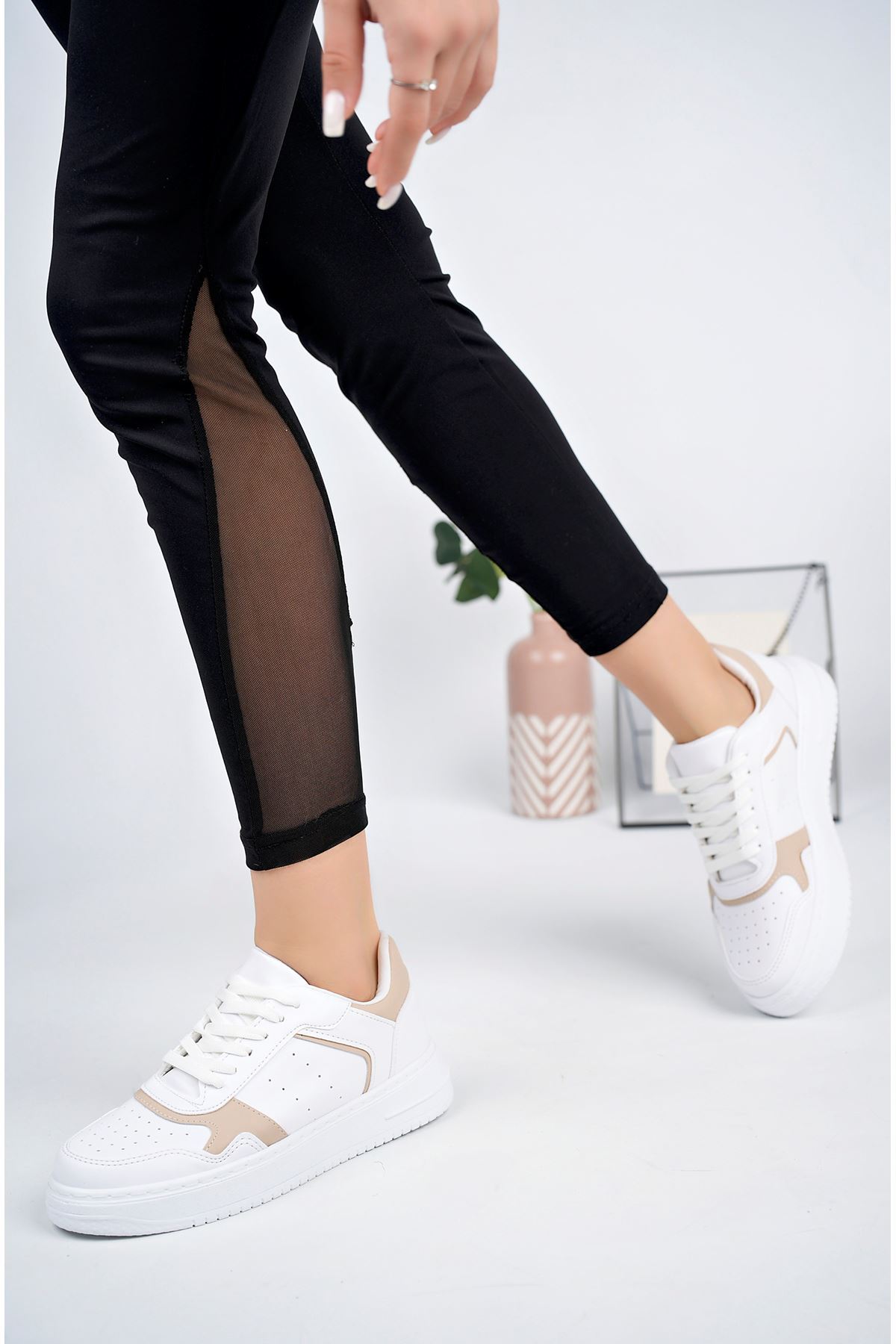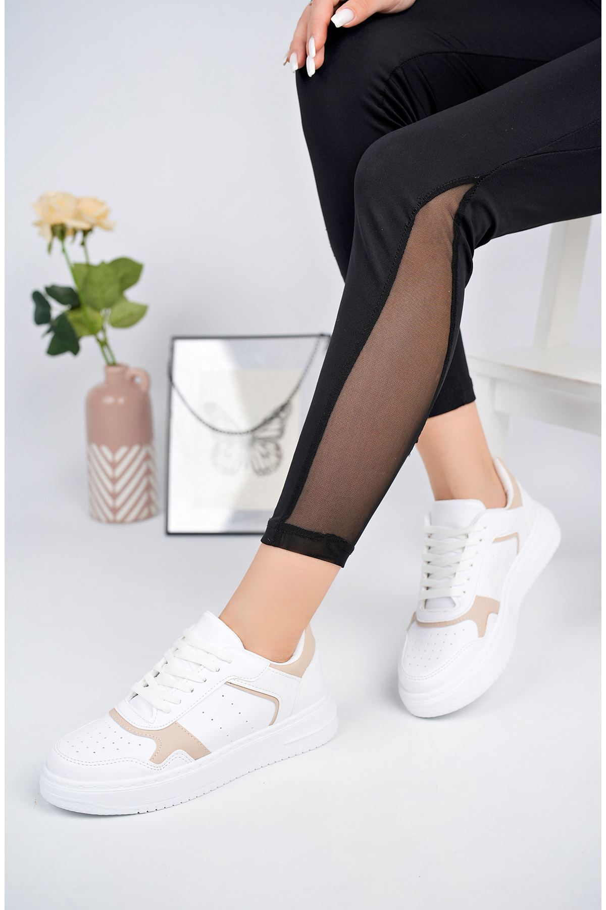 Alçak Taban Mekval Dikişli Krem Garnili Beyaz Spor Ayakkabı