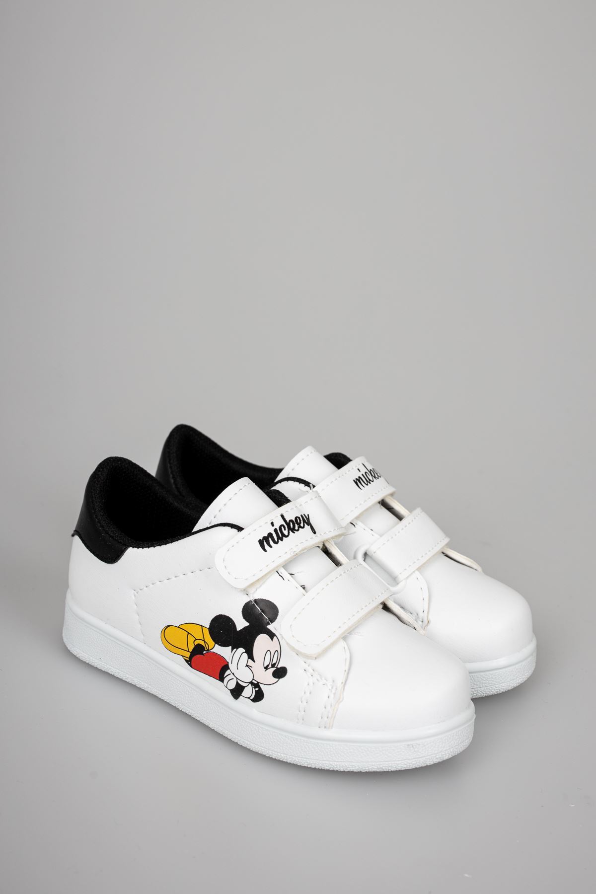Baskılı Beyaz Garnisi Siyah Çocuk Ayakkabı