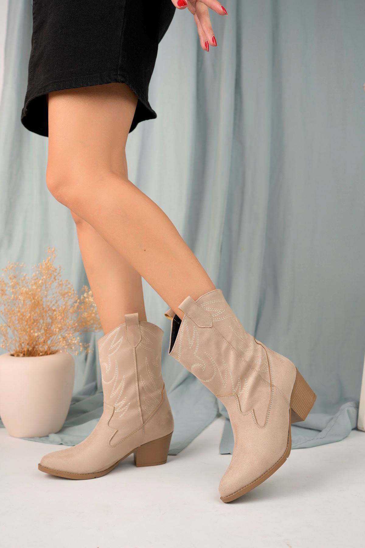 Bej Süet Kovboy Çizme