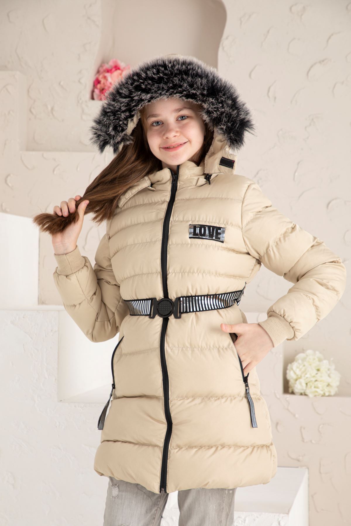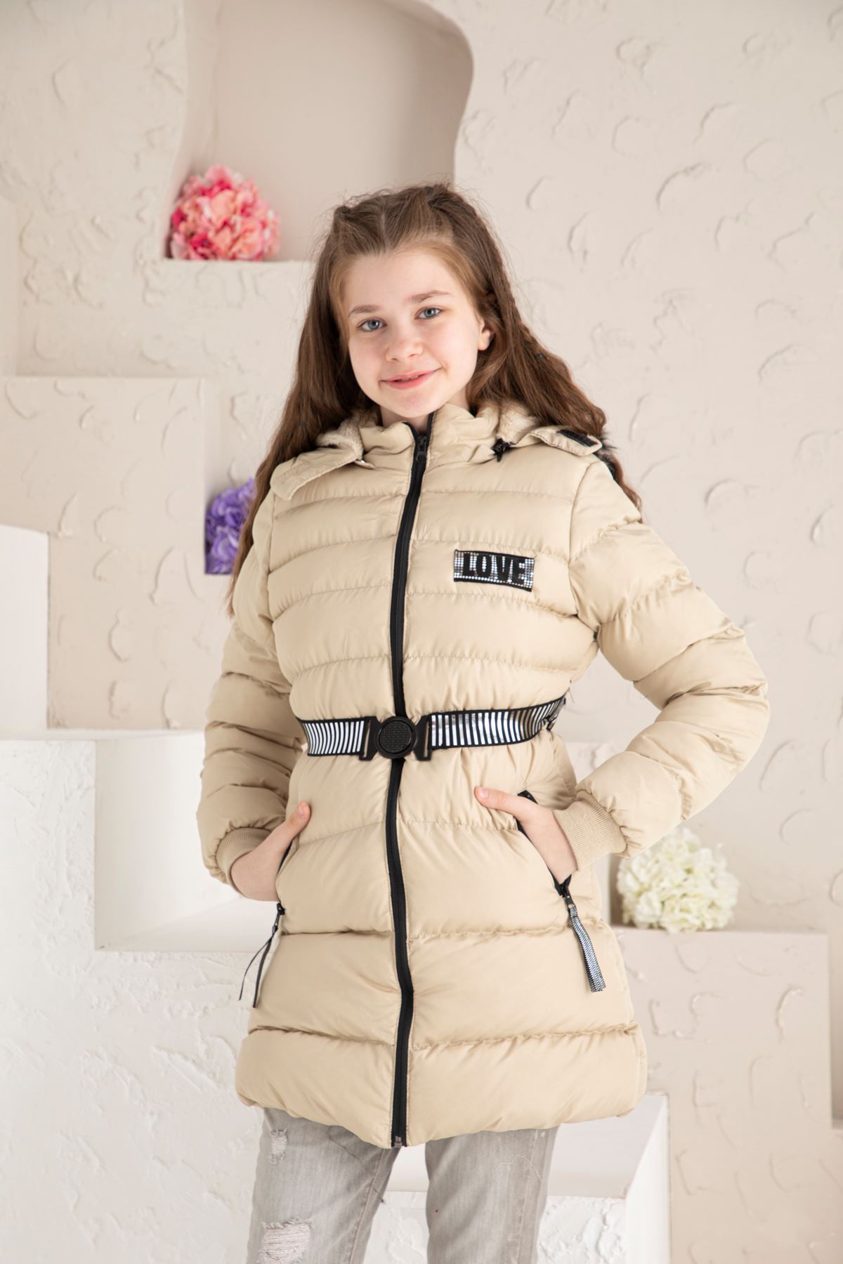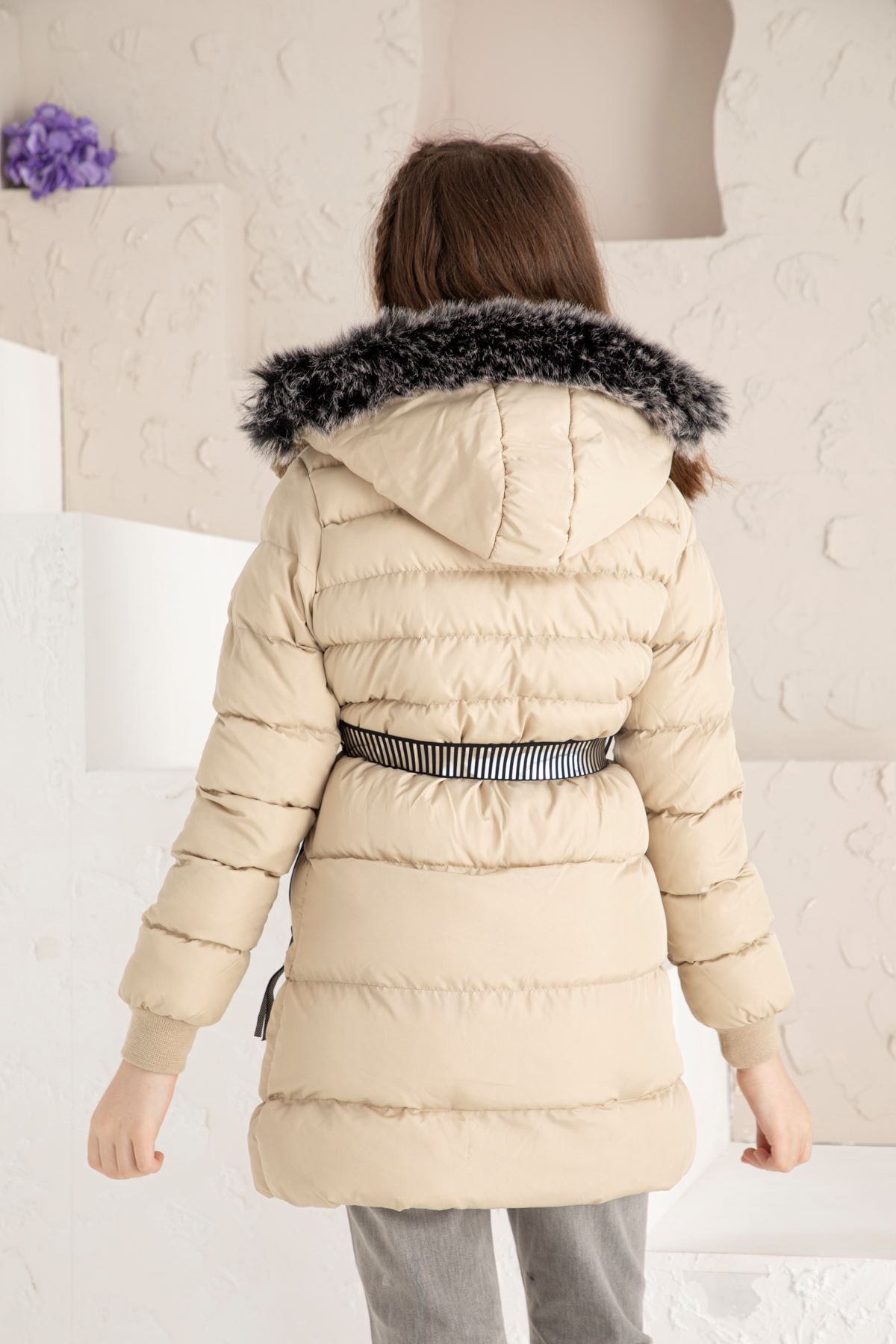 Beli Kemerli İçi Yünlü Kız Çocuk Mont