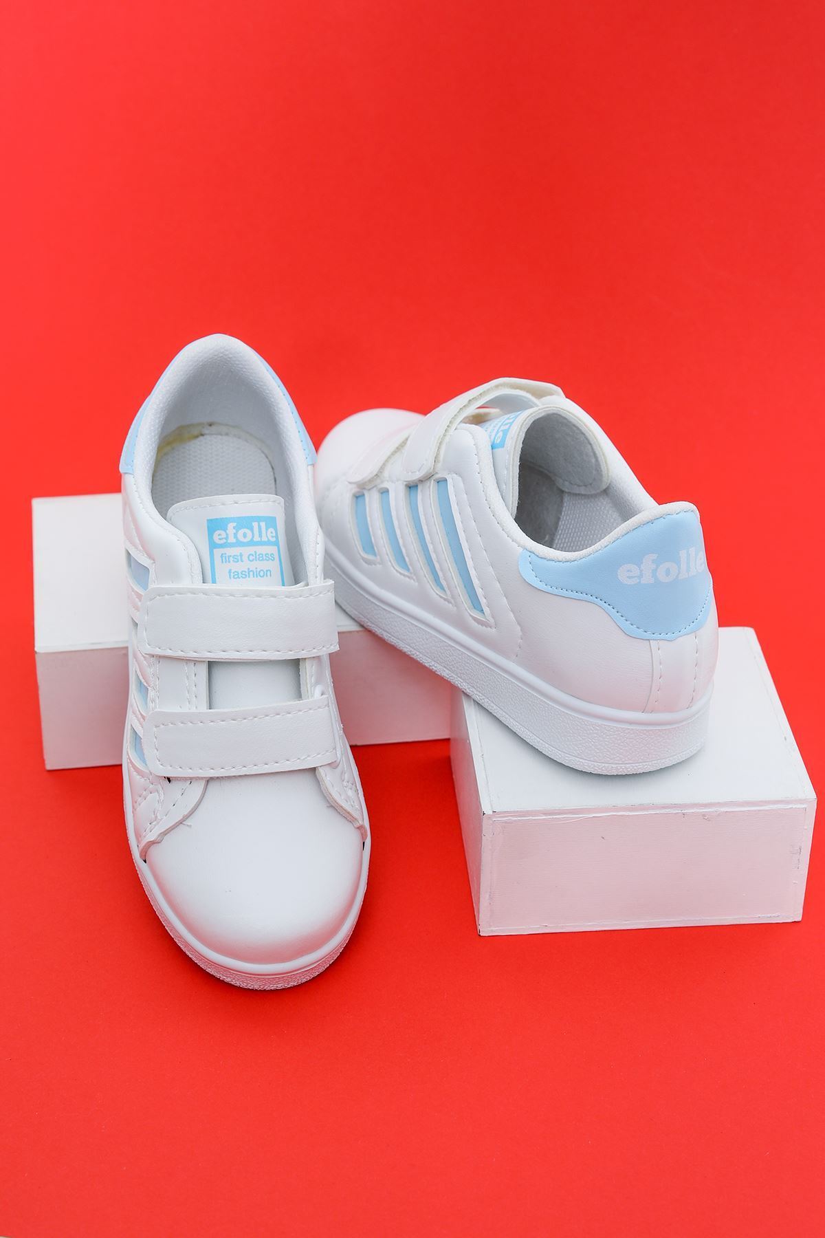 Beyaz Yanı Mavi Şeritli Çocuk Ayakkabı