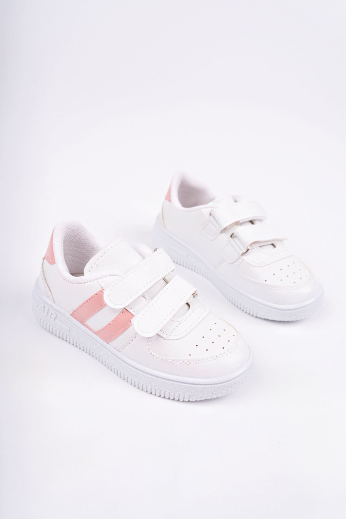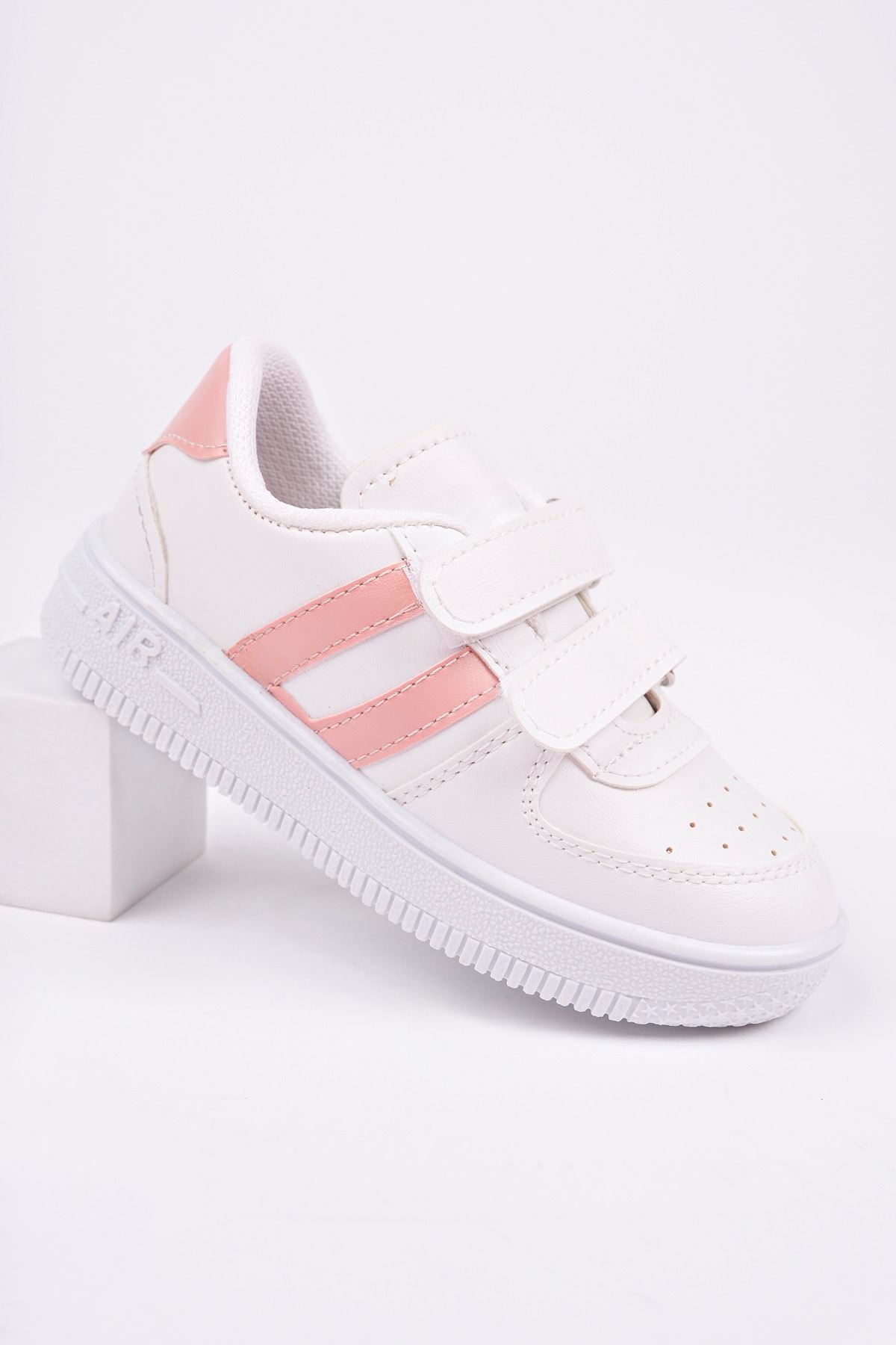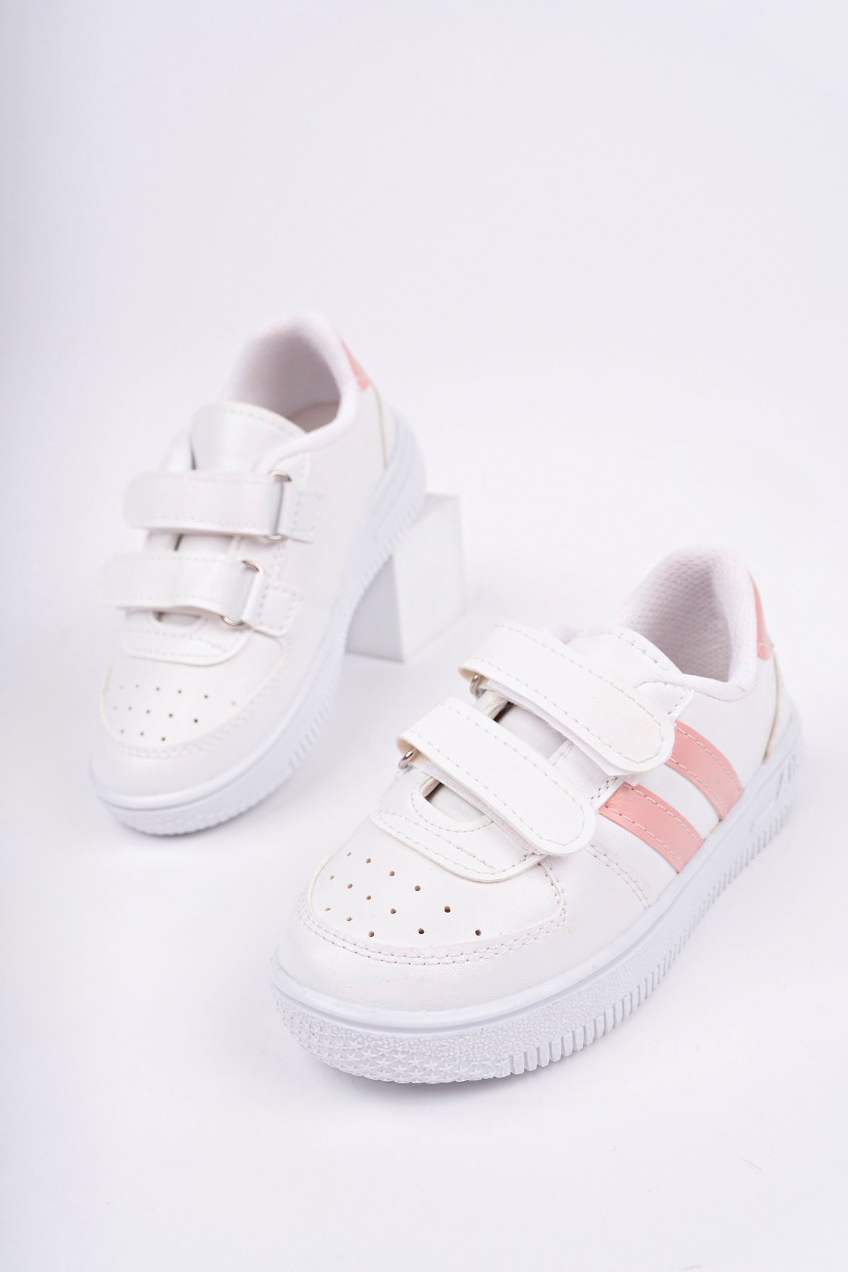 Beyaz Yanı Pembe Şeritli Cırtlı Çocuk Spor Ayakkabı