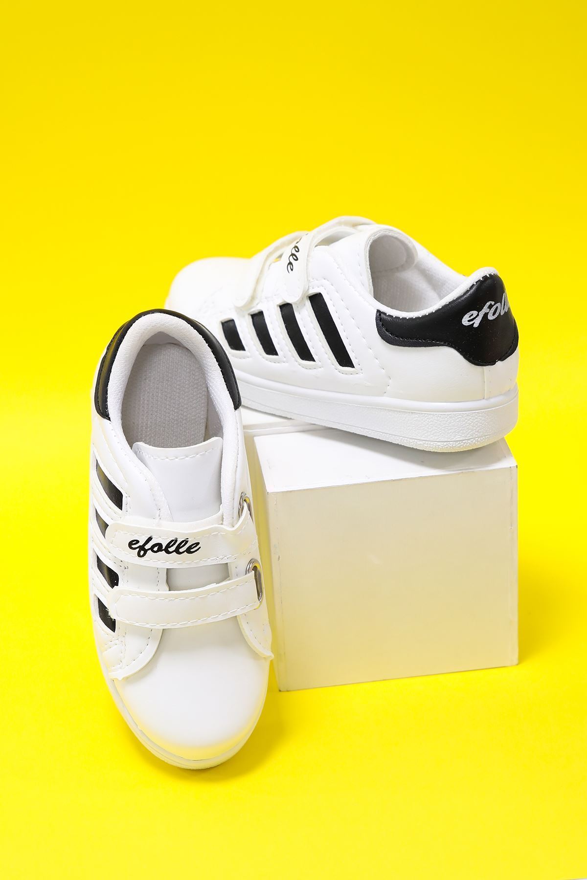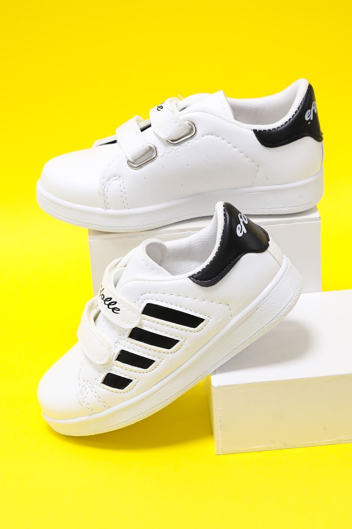 Beyaz Yanı Siyah Şeritli Çocuk Ayakkabı