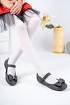 Topuklu Fiyonklu Siyah Rugan Kız Çocuk Ayakkabı