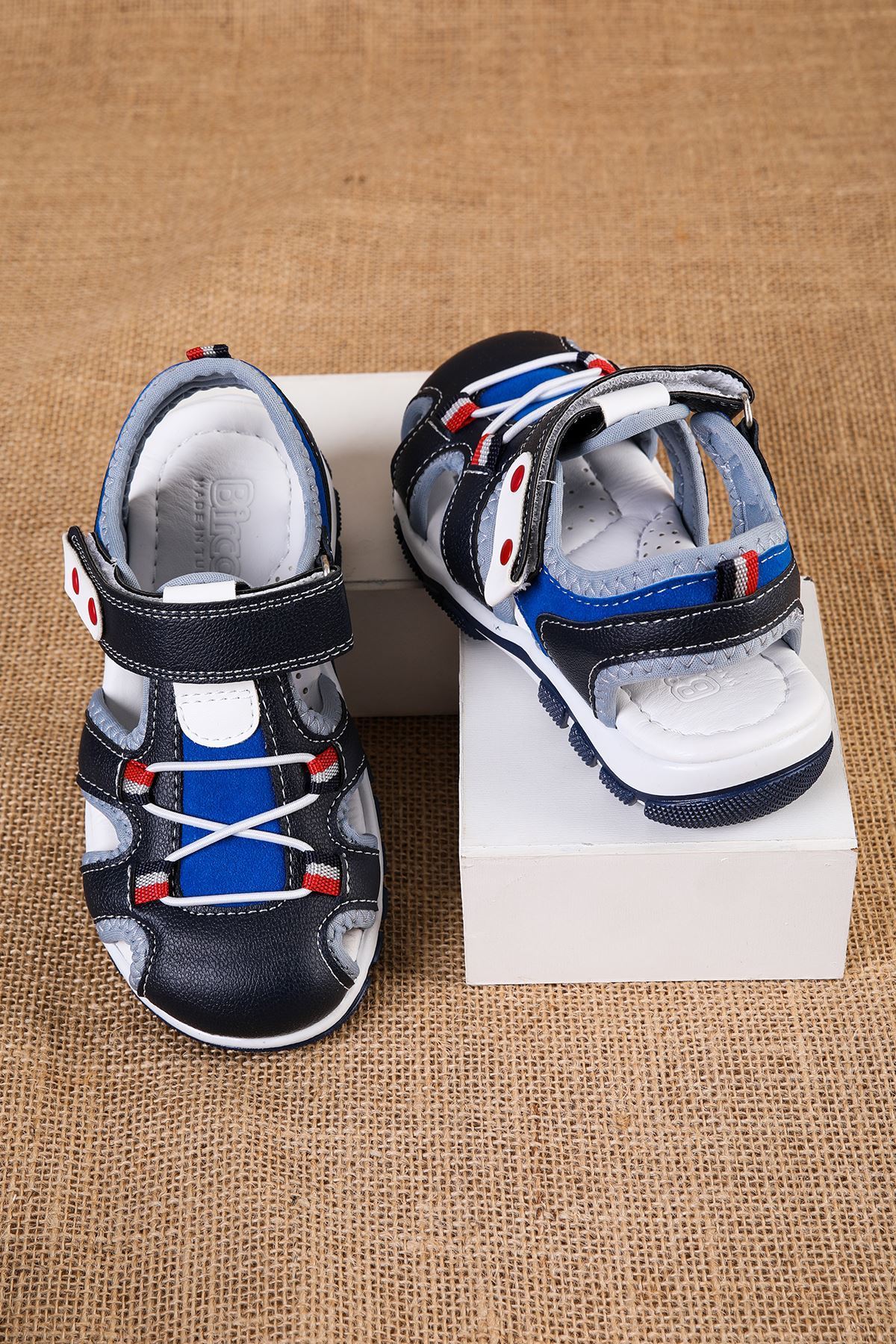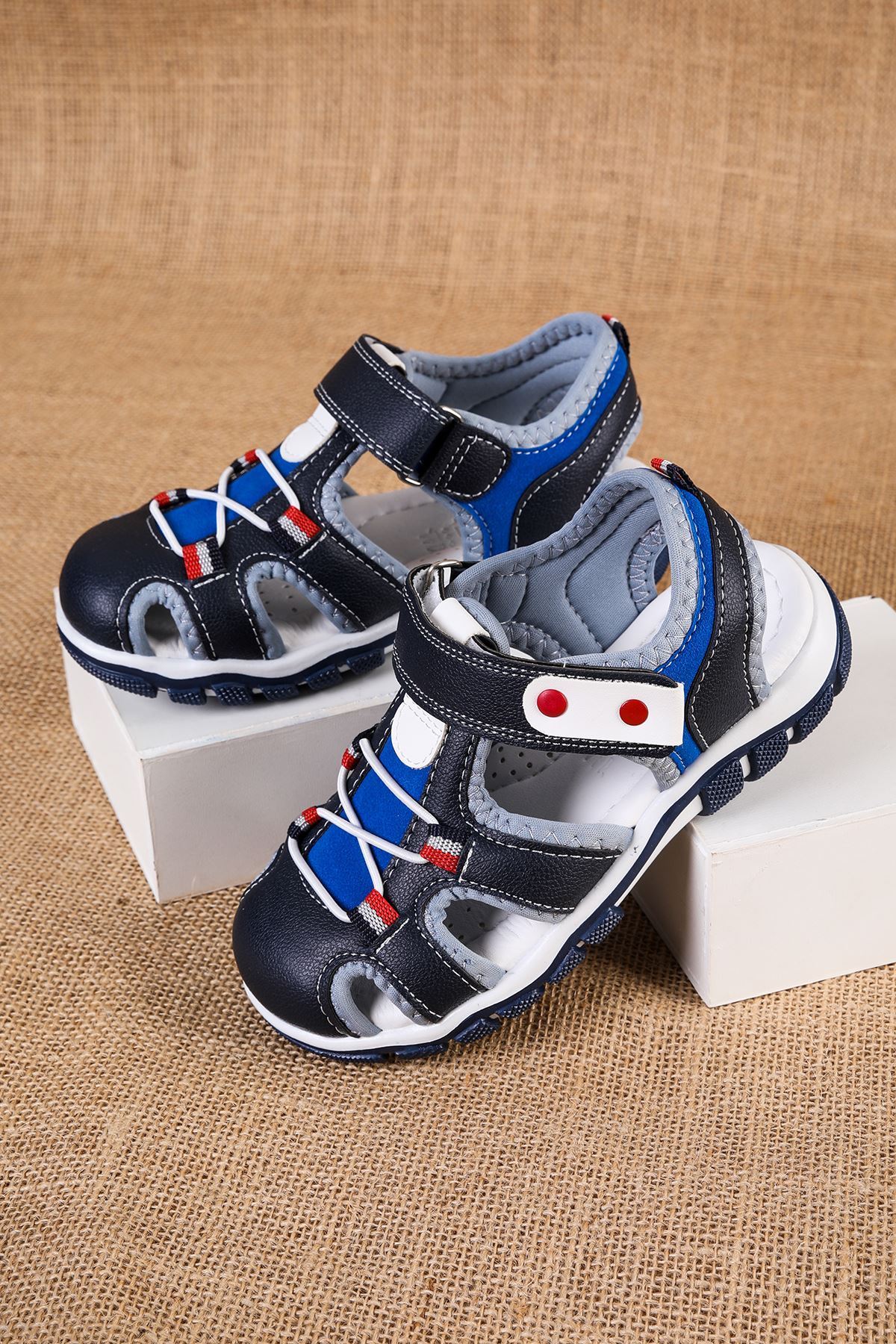 Burnu Kapalı Lacivert Mavi Garnili Çocuk Sandalet