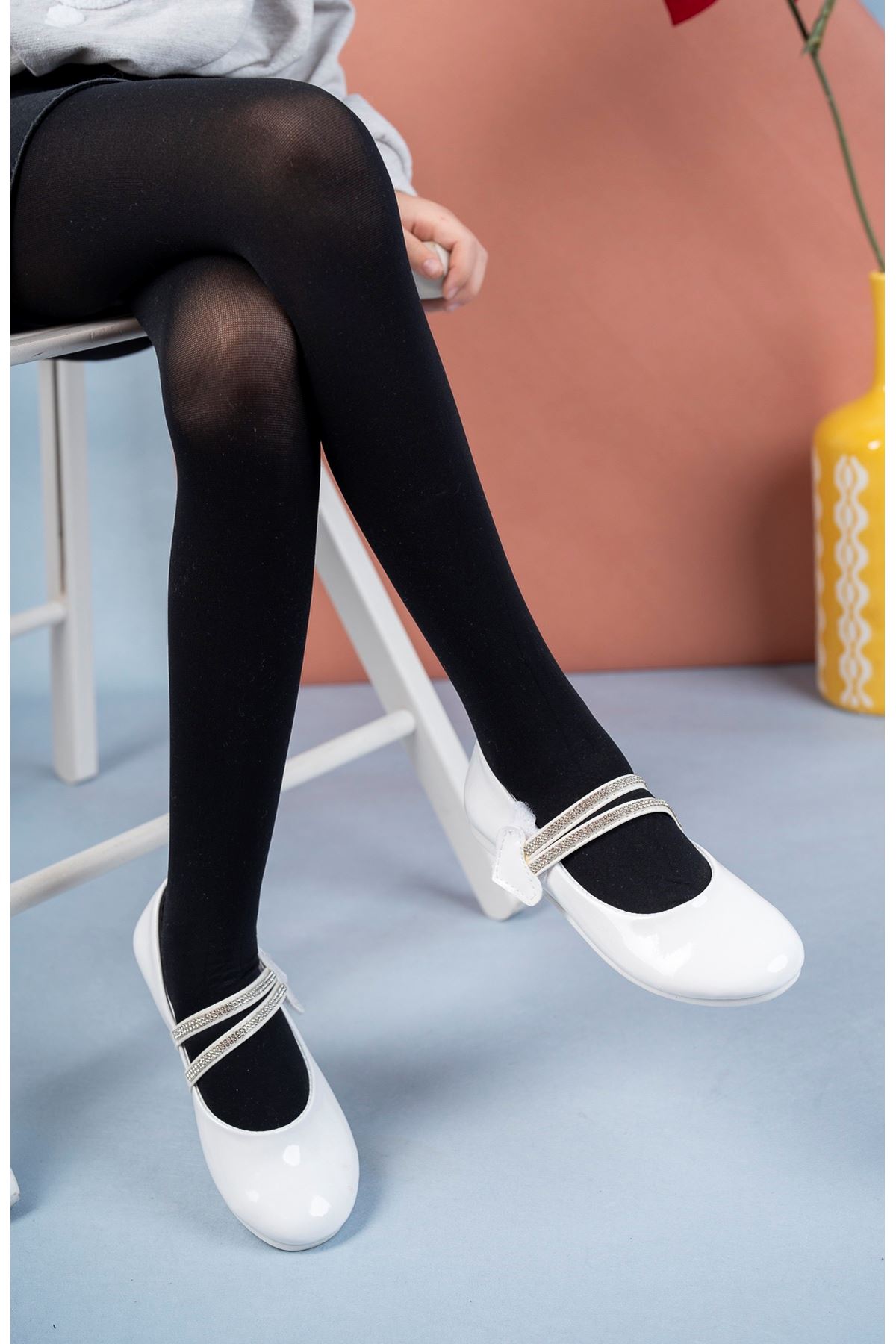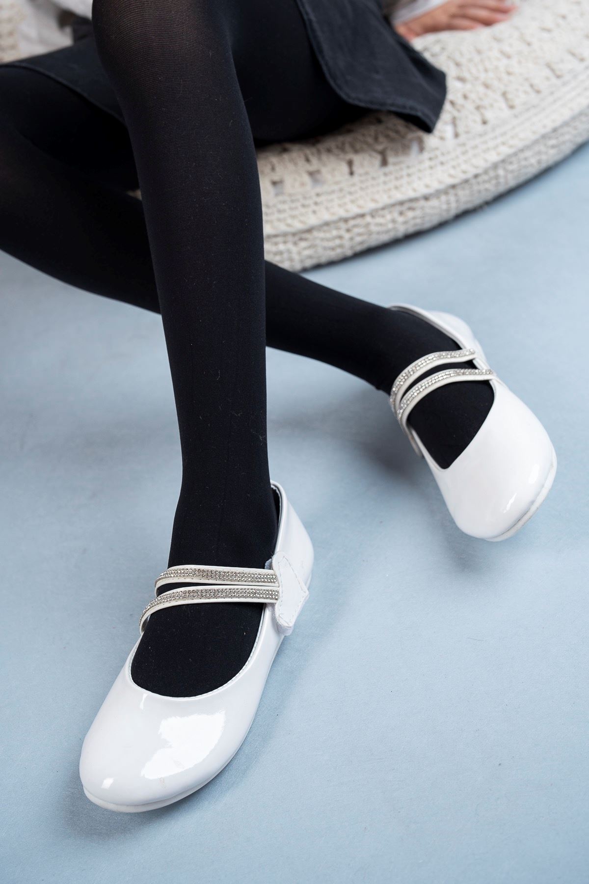 Çatal Baretli Beyaz Kız Çocuk Ayakkabı