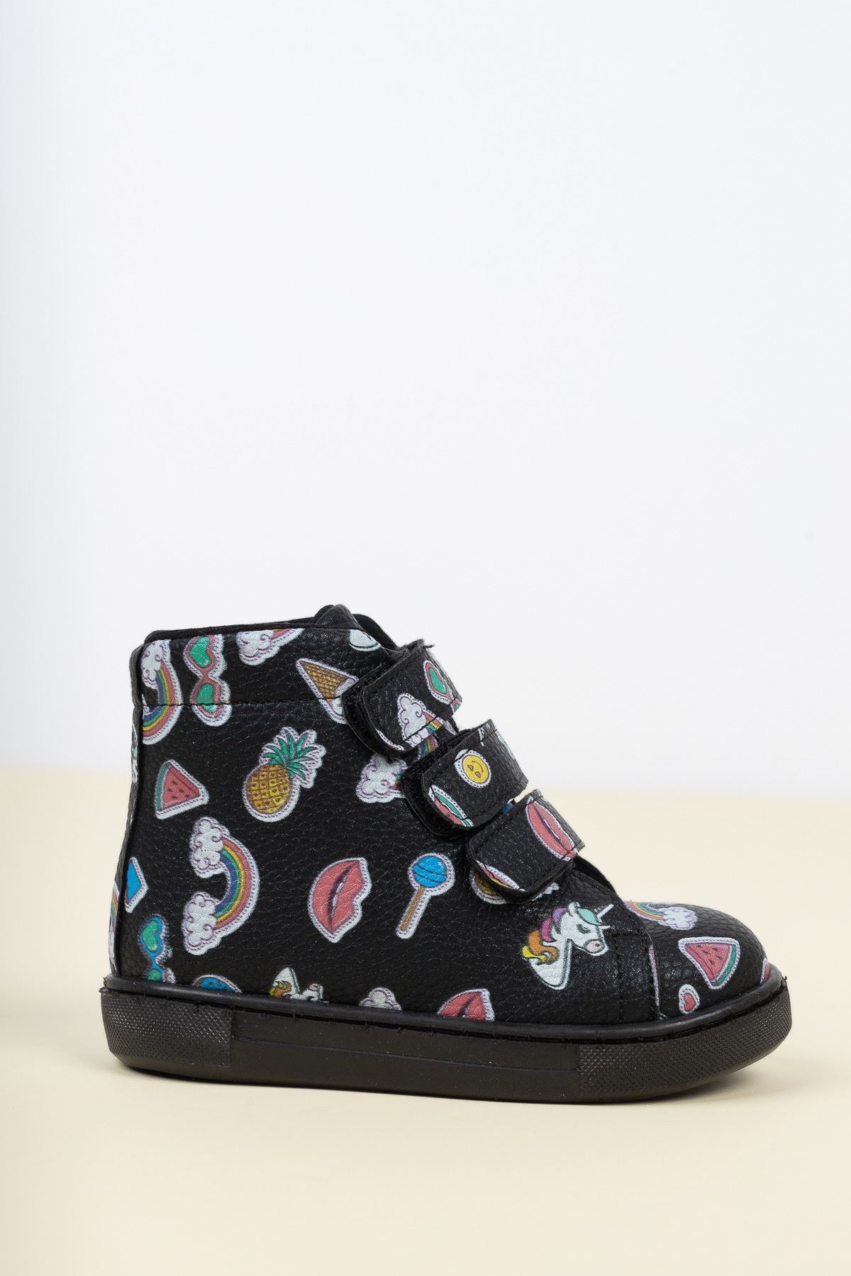 Dolgu Topuk Platform Taşlı Siyah Cilt Ayakkabı