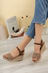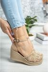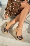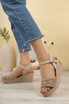 Dolgu Taban Arka Açık Siyah Taşlı Kadın Ayakkabı