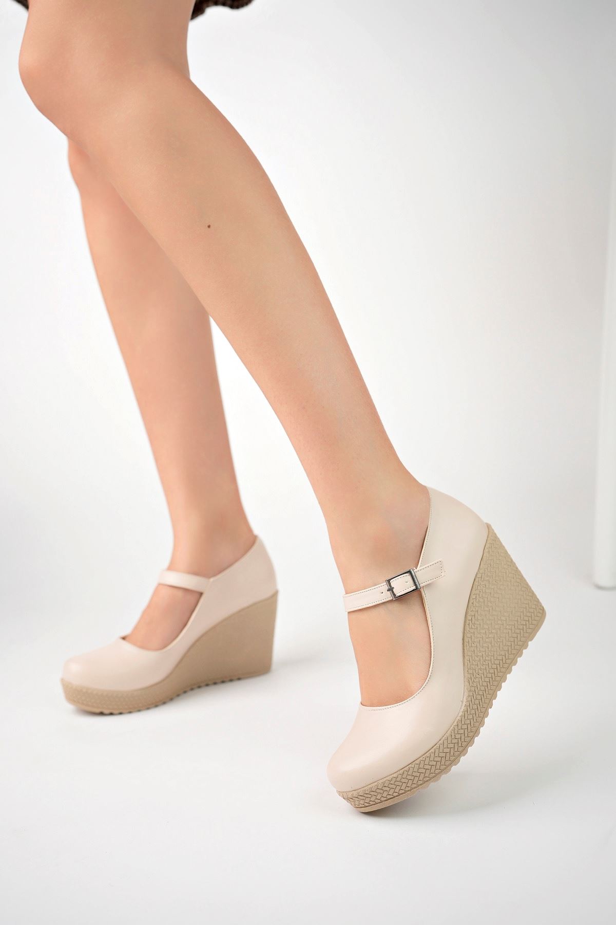 Dolgu Taban Bilekten Tokalı Krem İRM Cilt Ayakkabı