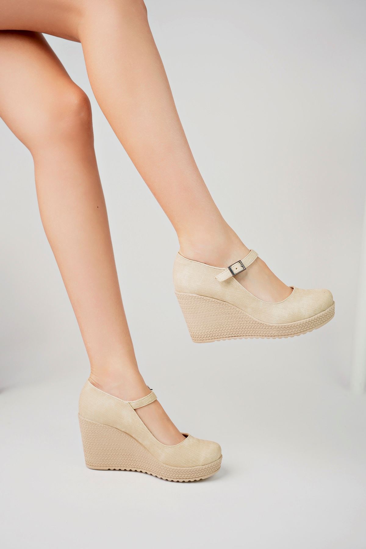 Dolgu Taban Bilekten Tokalı Vizon İRM Kot Ayakkabı