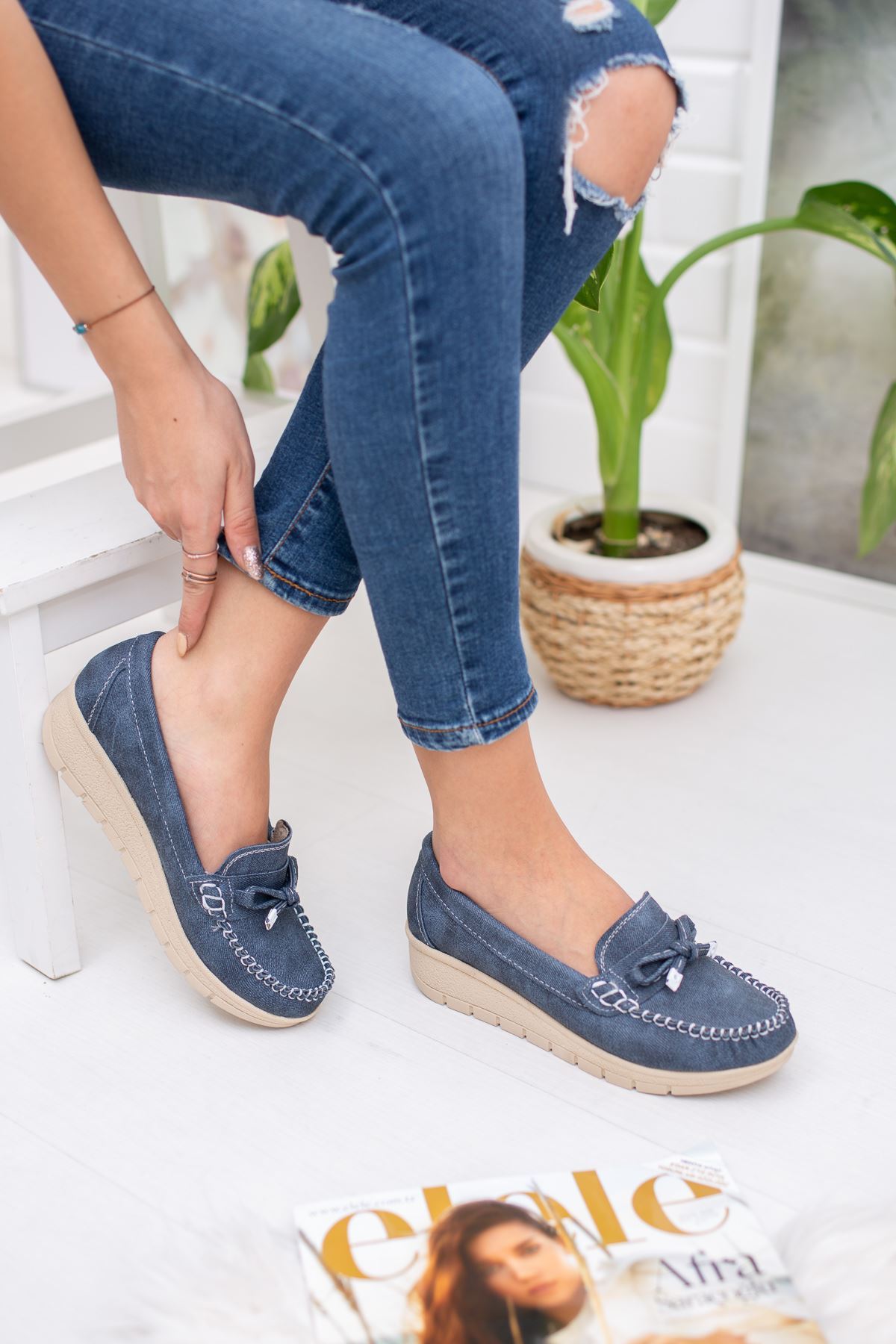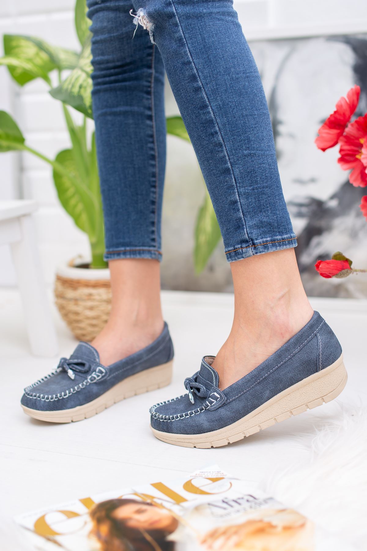 Dolgu Taban Bıyıklı Ortapedik Pedli Lacivert Ayakkabı