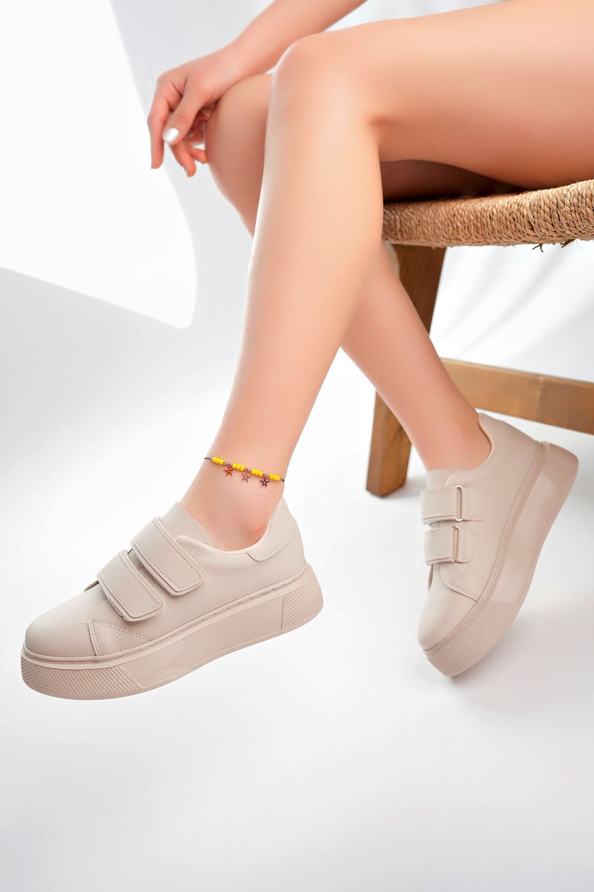 Dolgu Taban Cırtlı Krem Kadın Ayakkabı