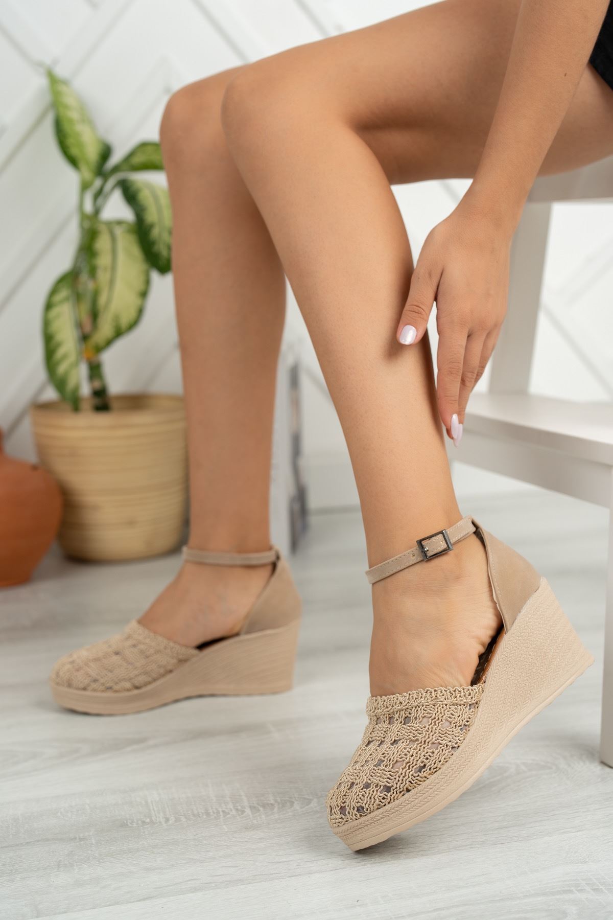 Dolgu Taban Ekose Örgü Ten Karnıyarık Ayakkabı