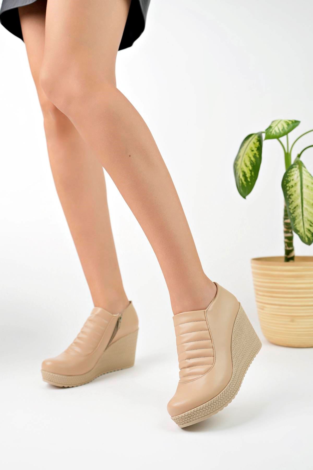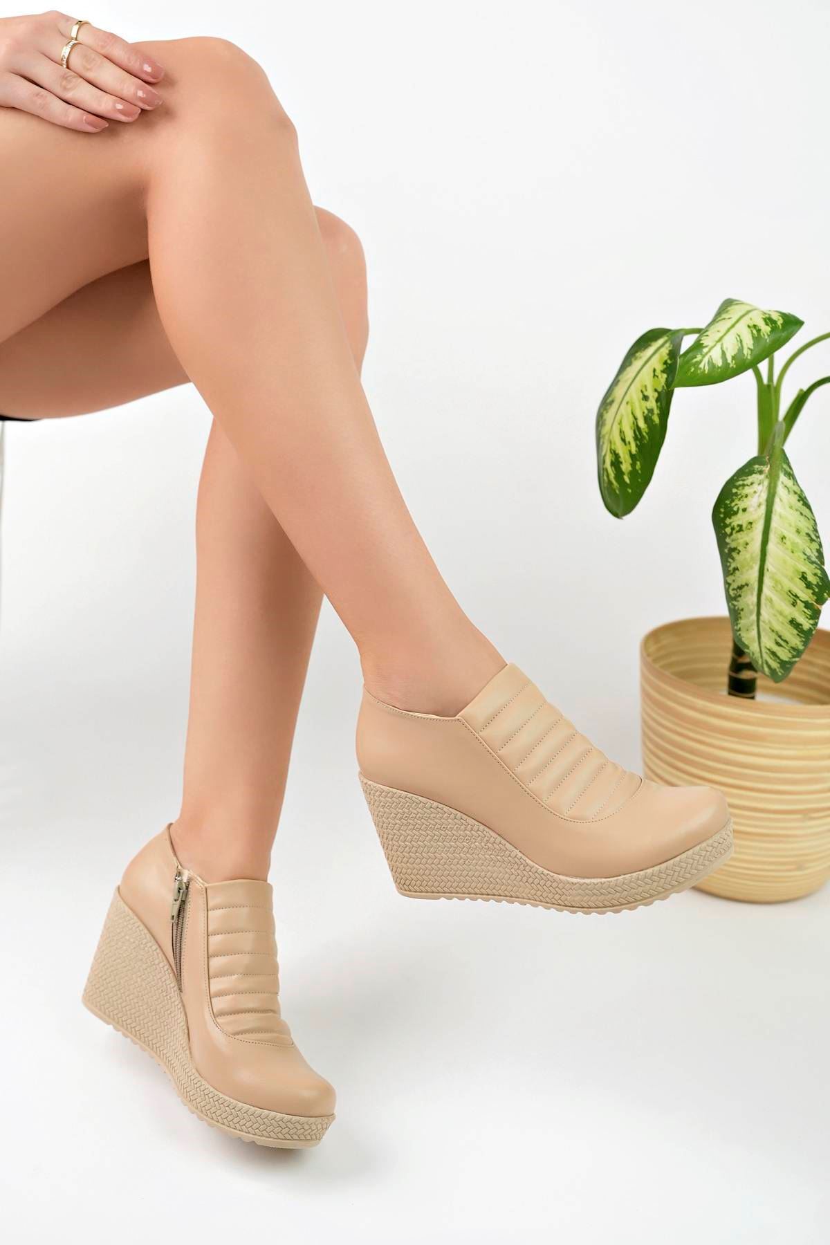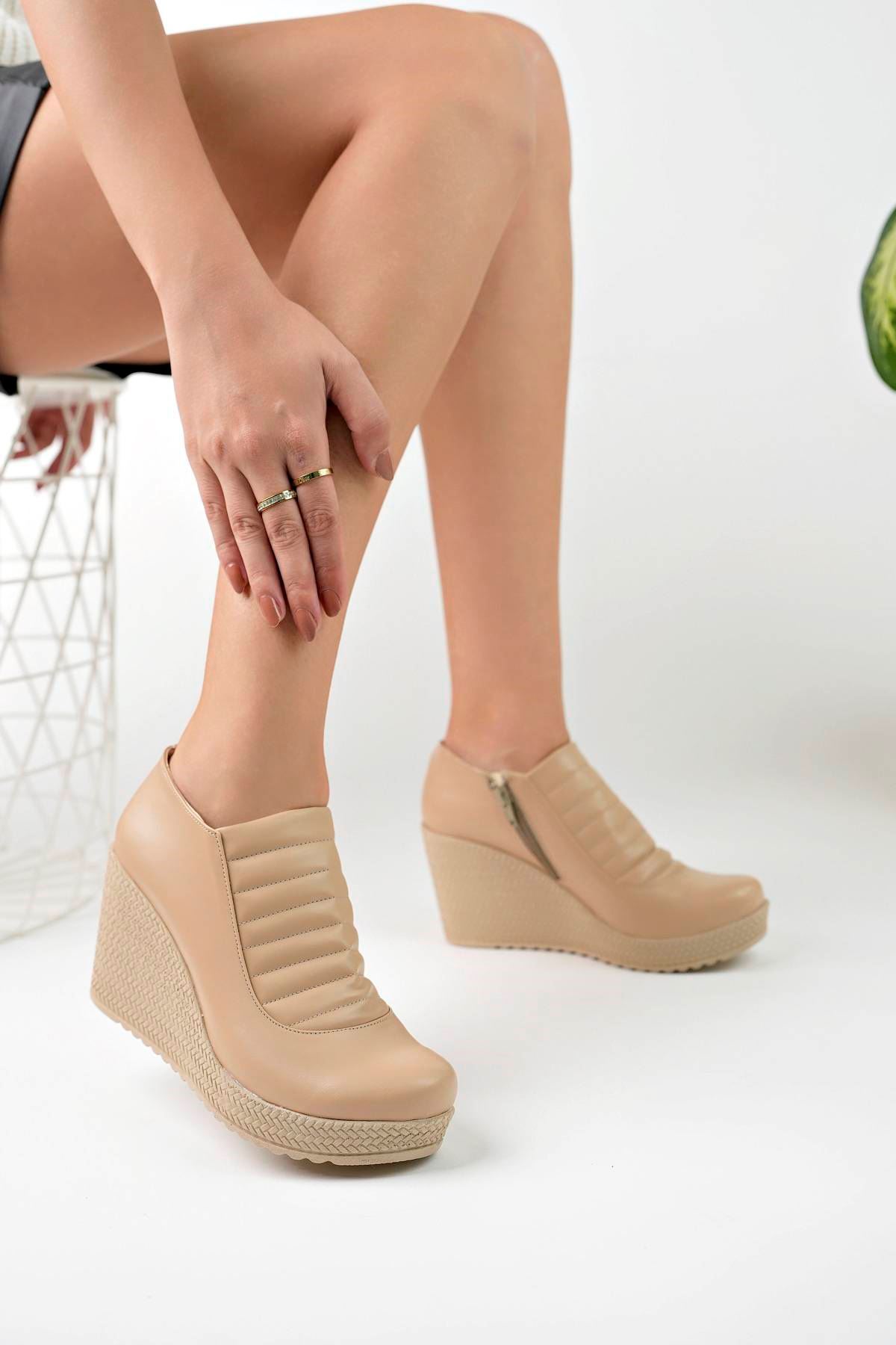 Dolgu Taban Fermuarlı Nut Cilt Kadın Ayakkabı