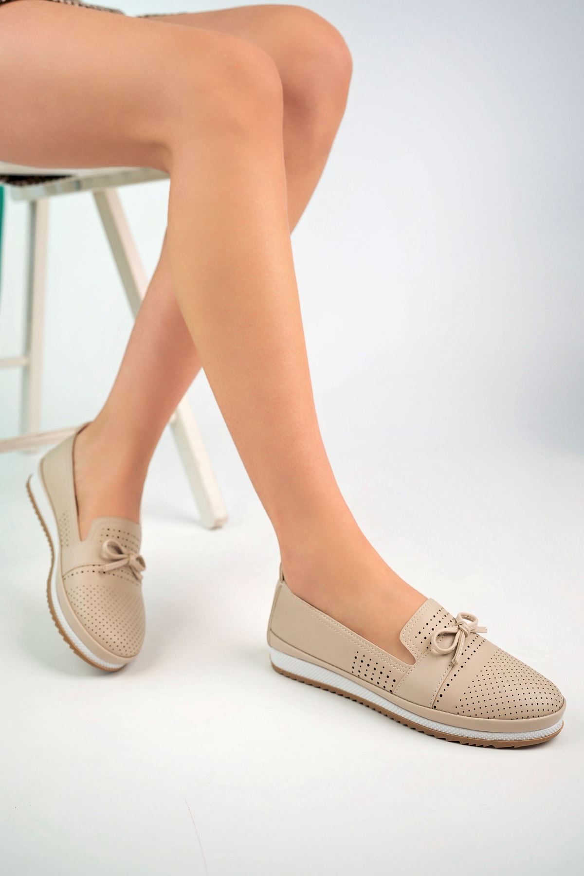 Dolgu Taban Fermuarlı Krem Cilt Kadın Ayakkabı