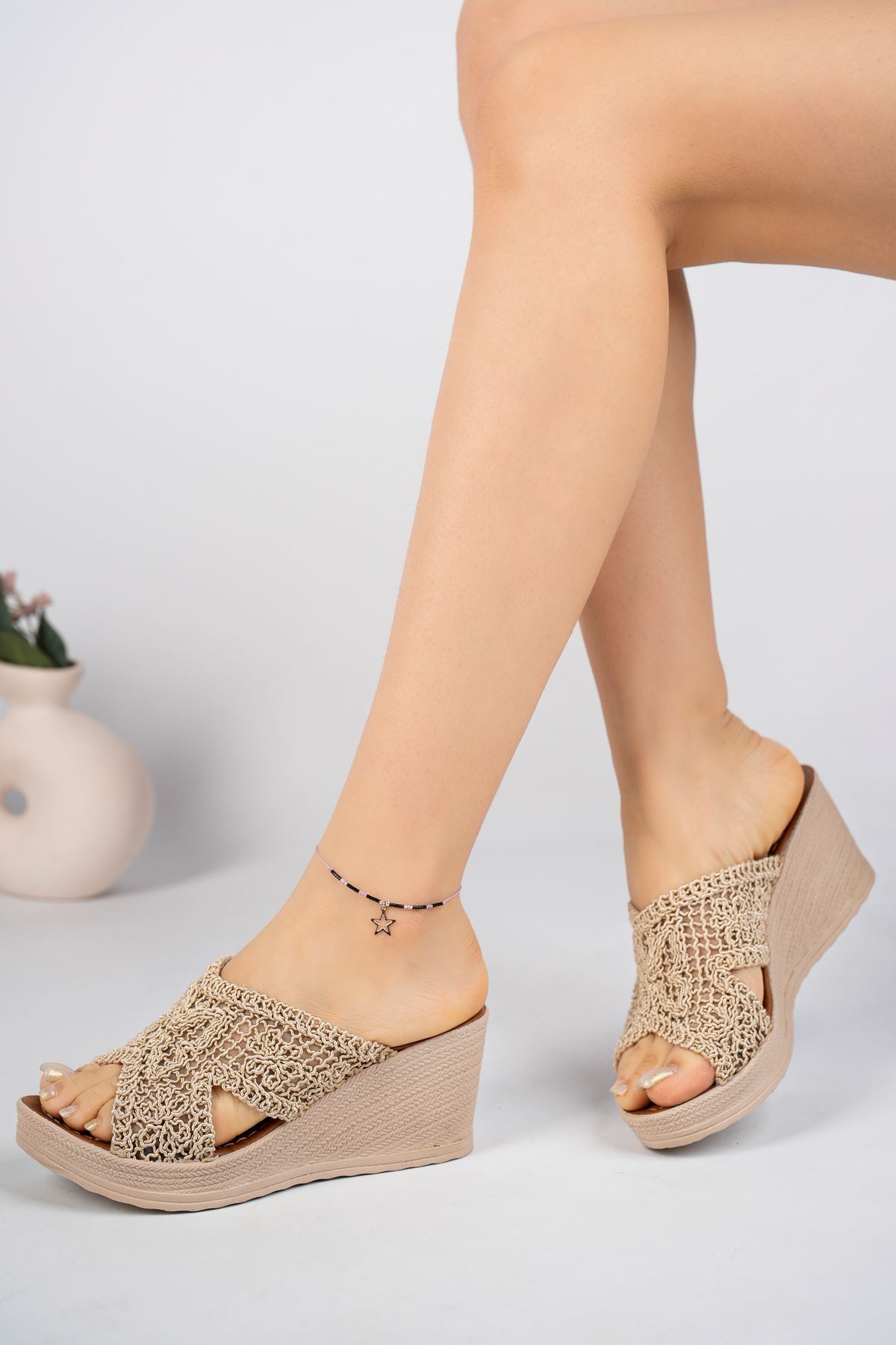 Dolgu Taban Önü Açık Örgü Ten Kadın Terlik