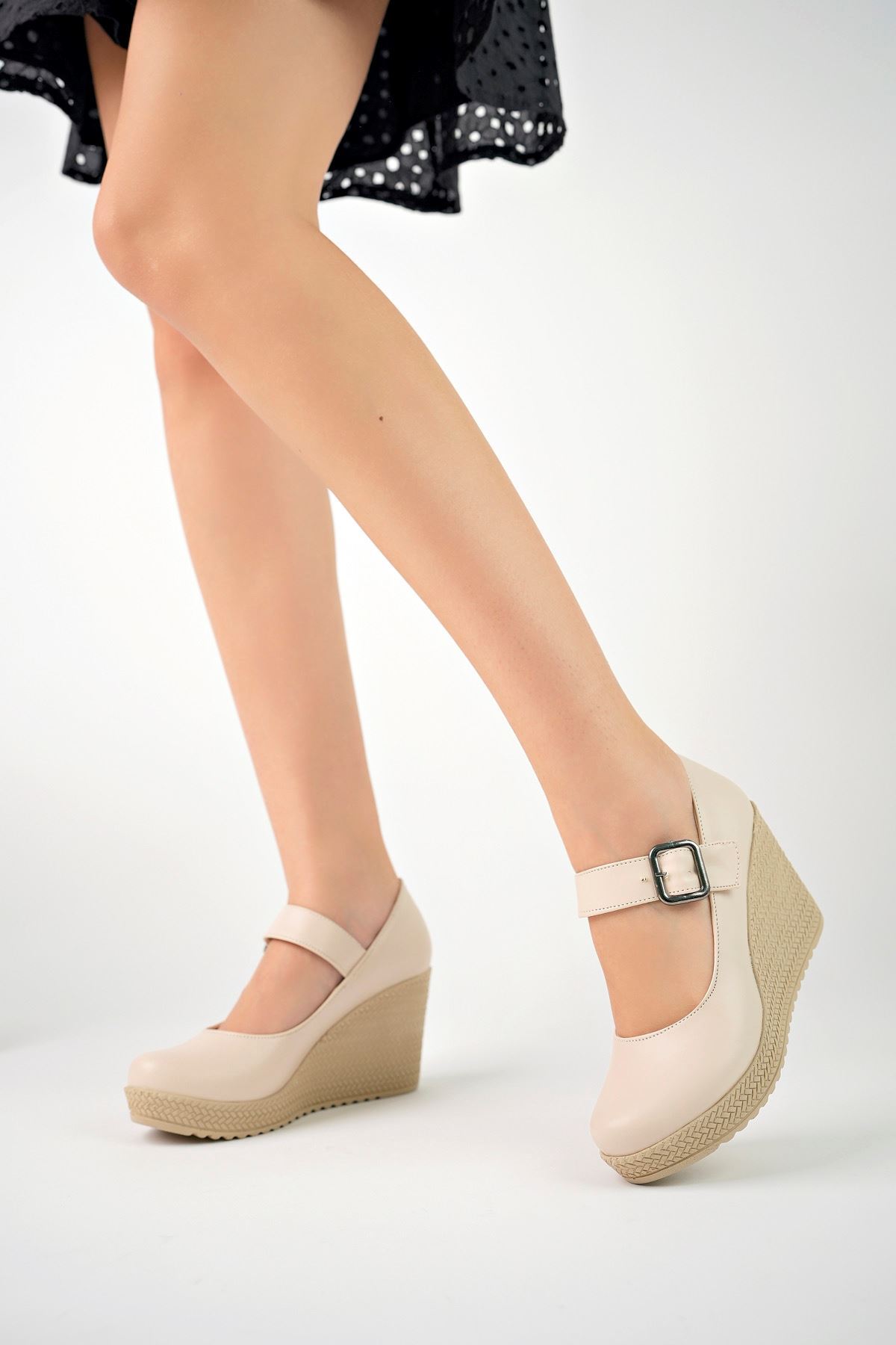 Dolgu Taban Tek Bant Krem Cilt Kadın Ayakkabı