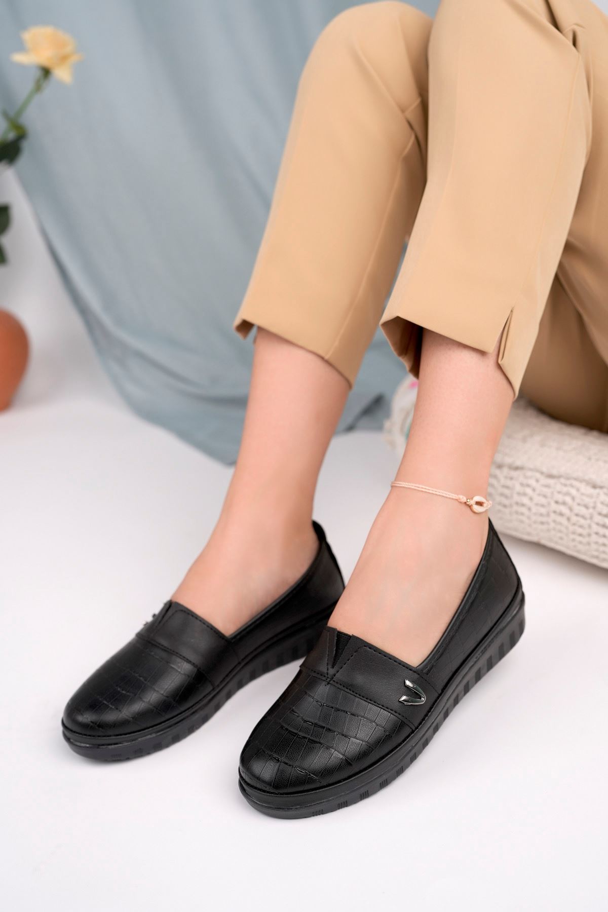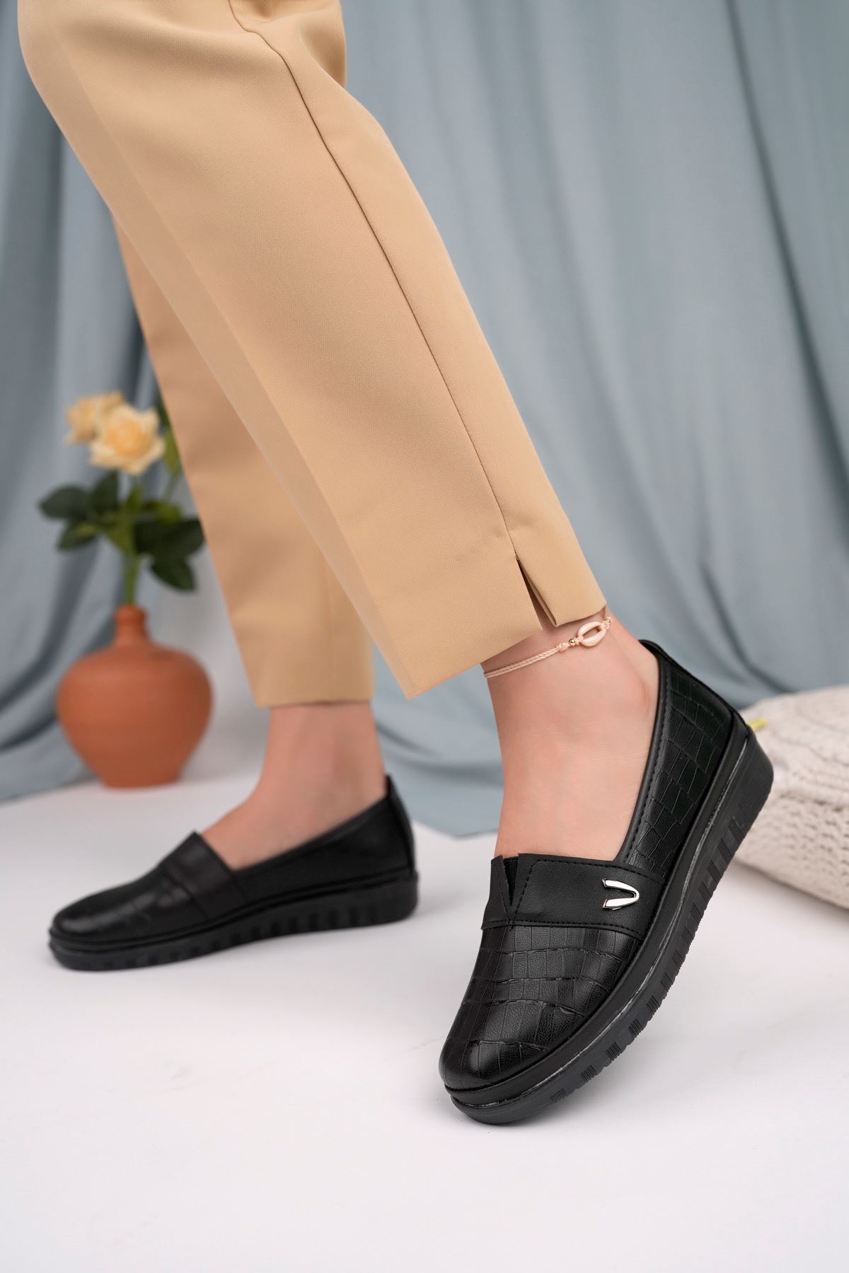 Dolgu Taban V Toka Siyah Krokodil Ayakkabı