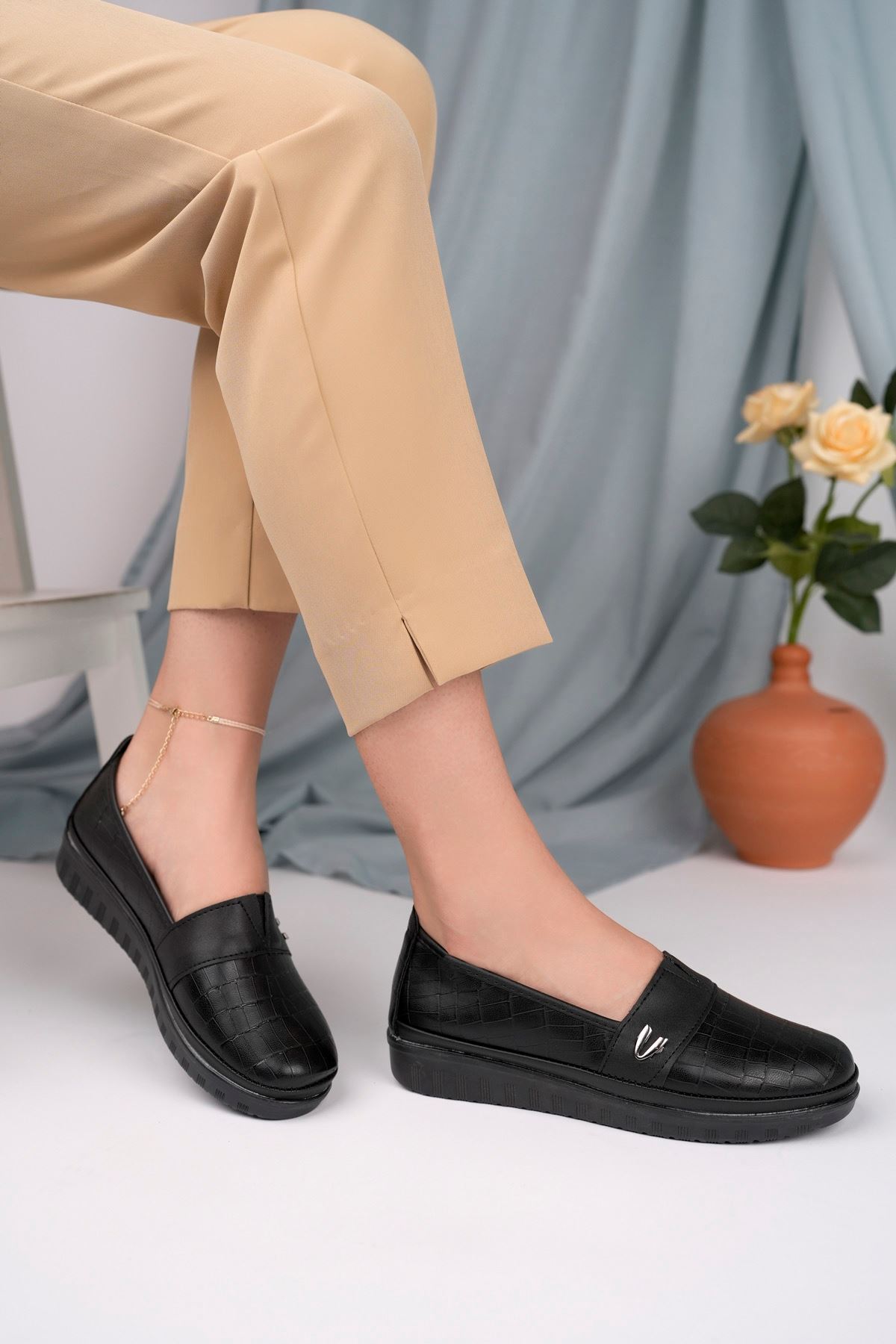 Dolgu Taban Arka Açık Siyah Taşlı Kadın Ayakkabı