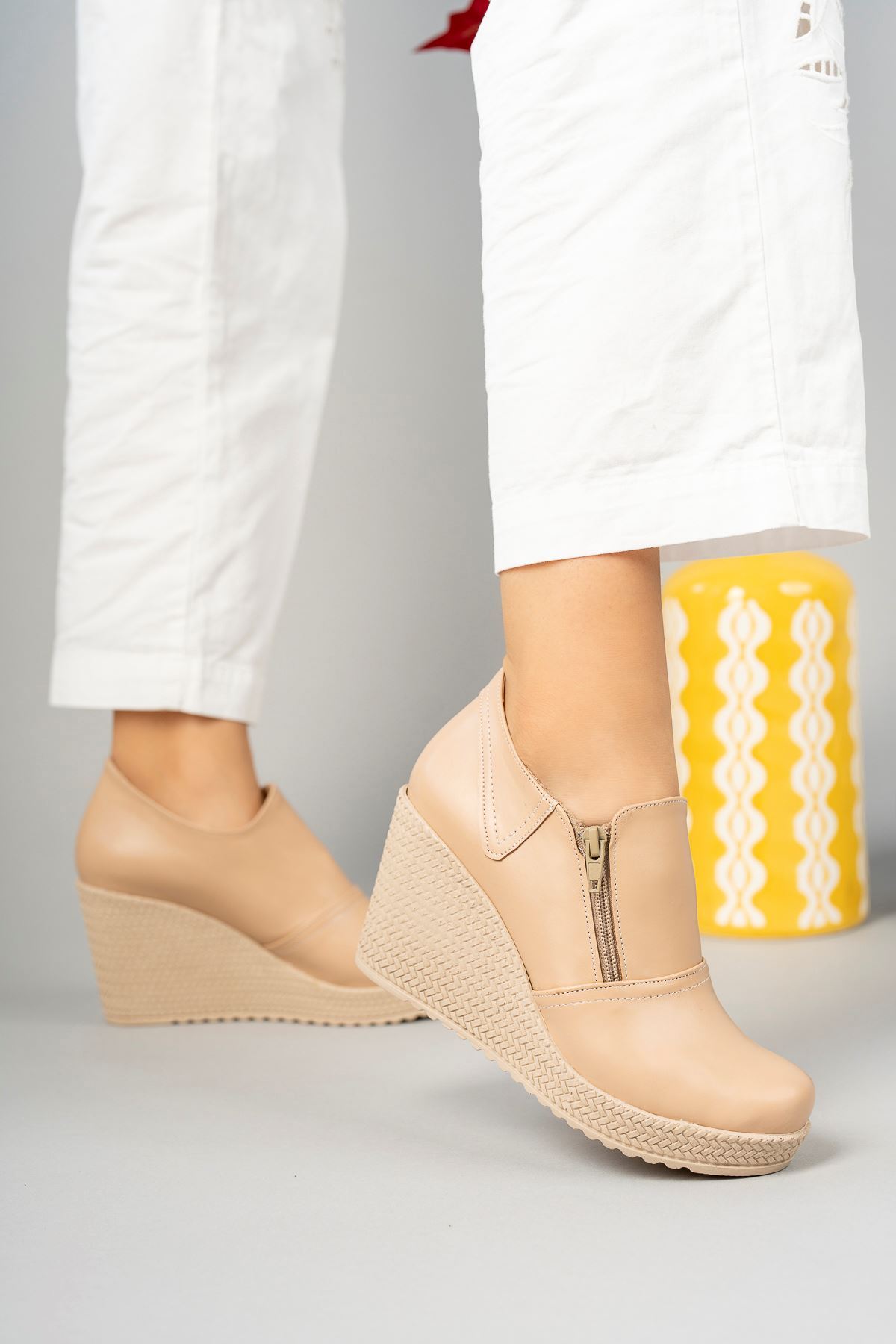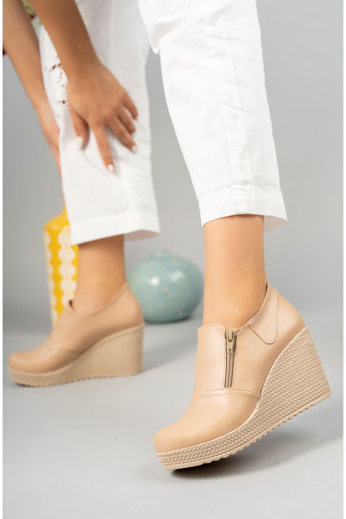 Dolgu Taban Yandan Fermuarlı Nut Cilt Ayakkabı