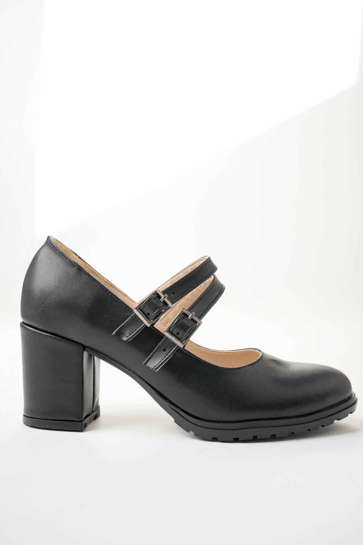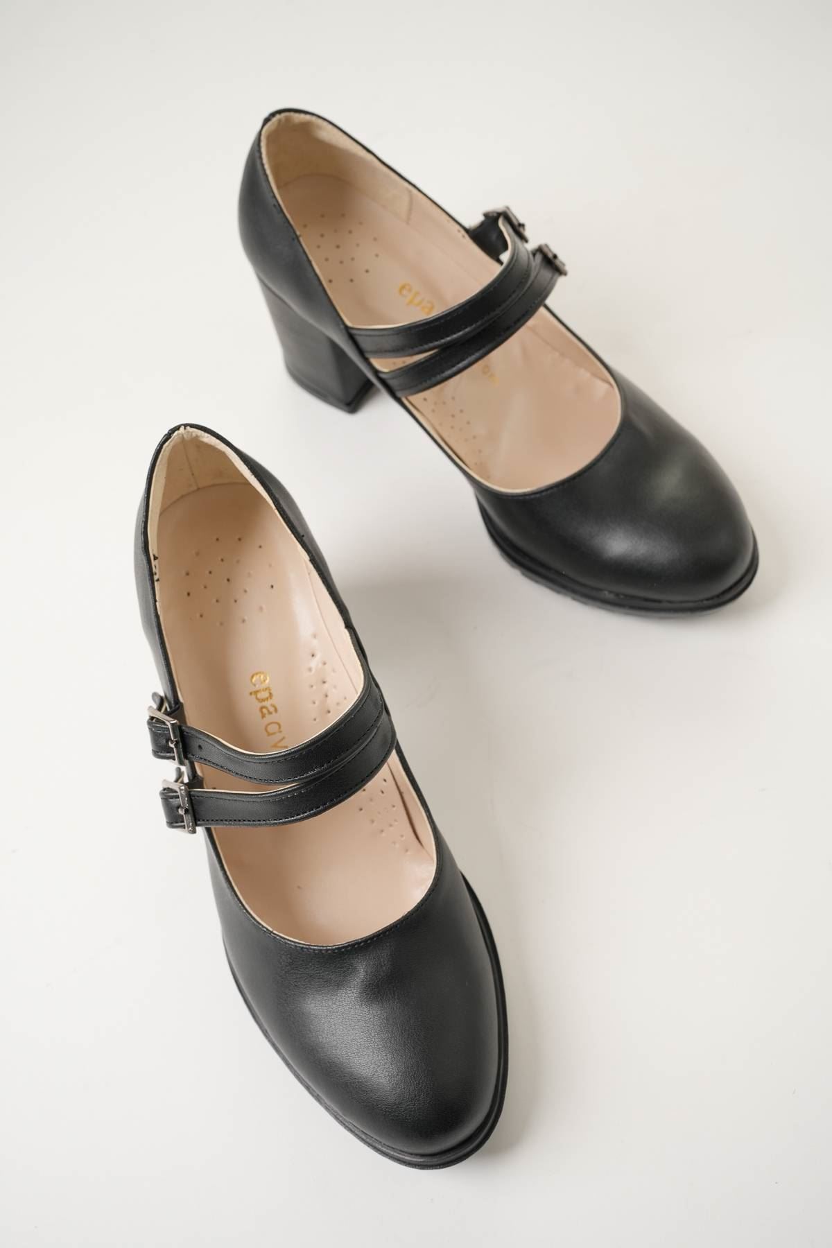 Dolgu Topuk Çift Bant Topan Kalıp Siyah Cilt