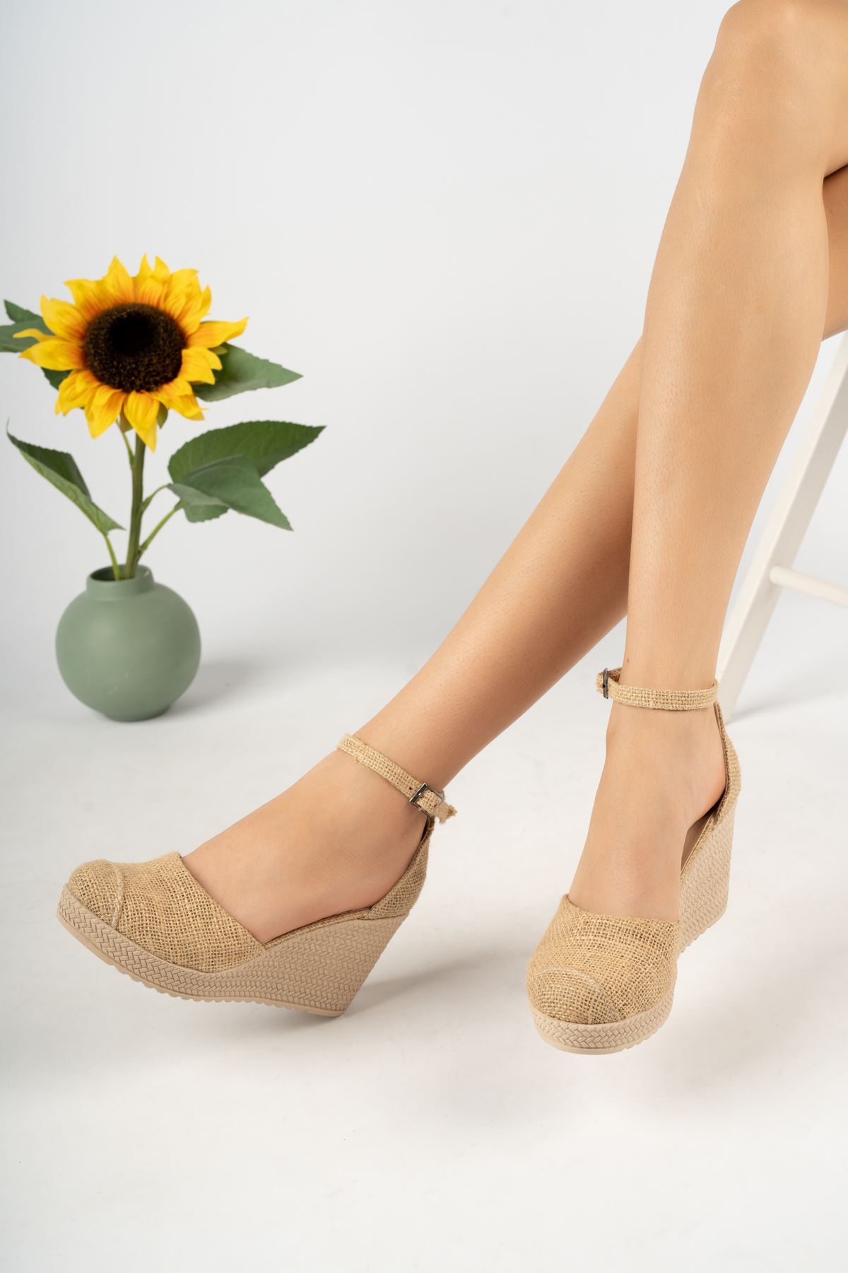 Dolgu Topuk Hasır Karnıyarık Ayakkabı