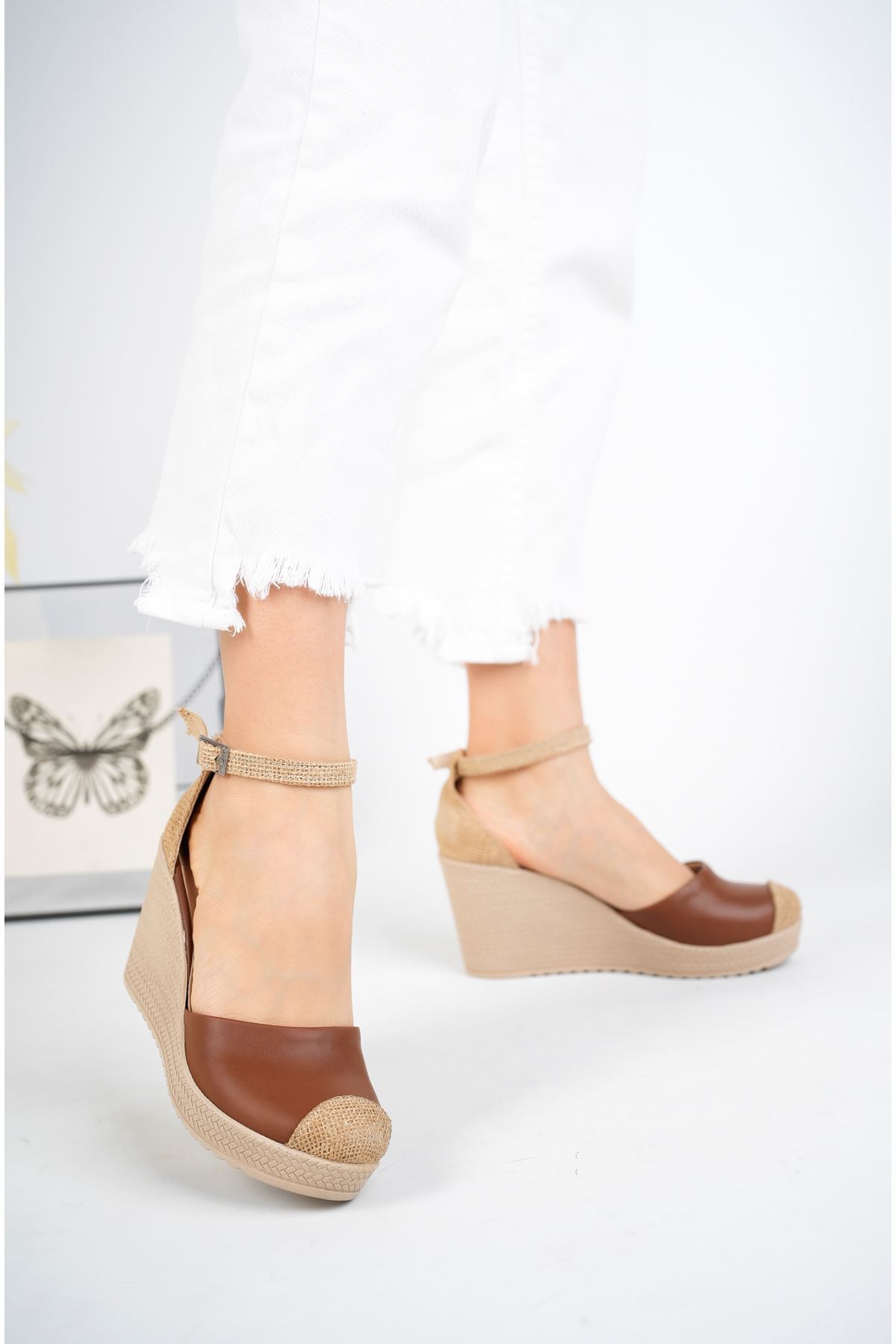 Dolgu Topuk Hasır Taba Cilt Karnıyarık Ayakkabı