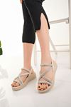 Dolgu Topuk Taşlı Nut Kadın Ayakkabı