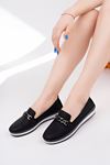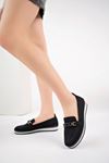 Dolgu Topuk Tokalı Triko Siyah Kadın Ayakkabı