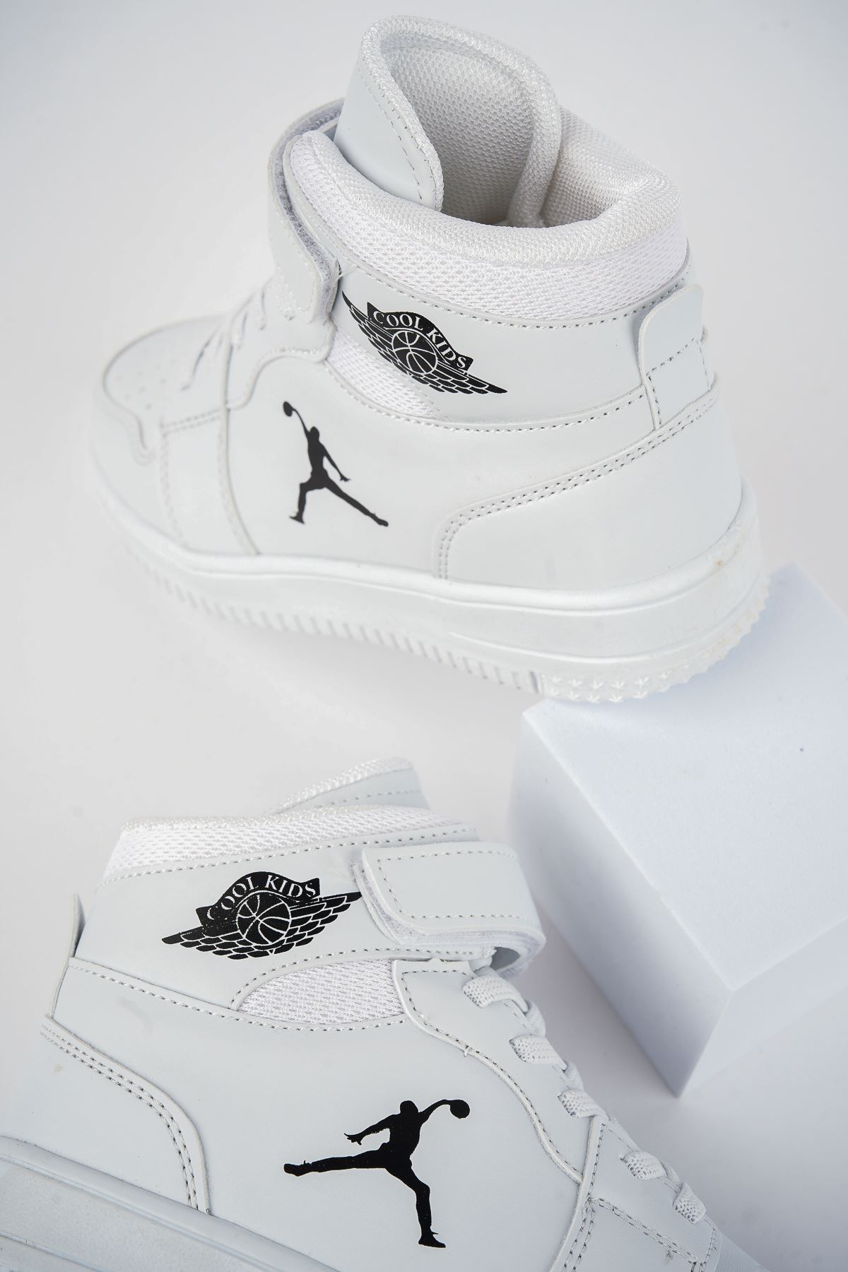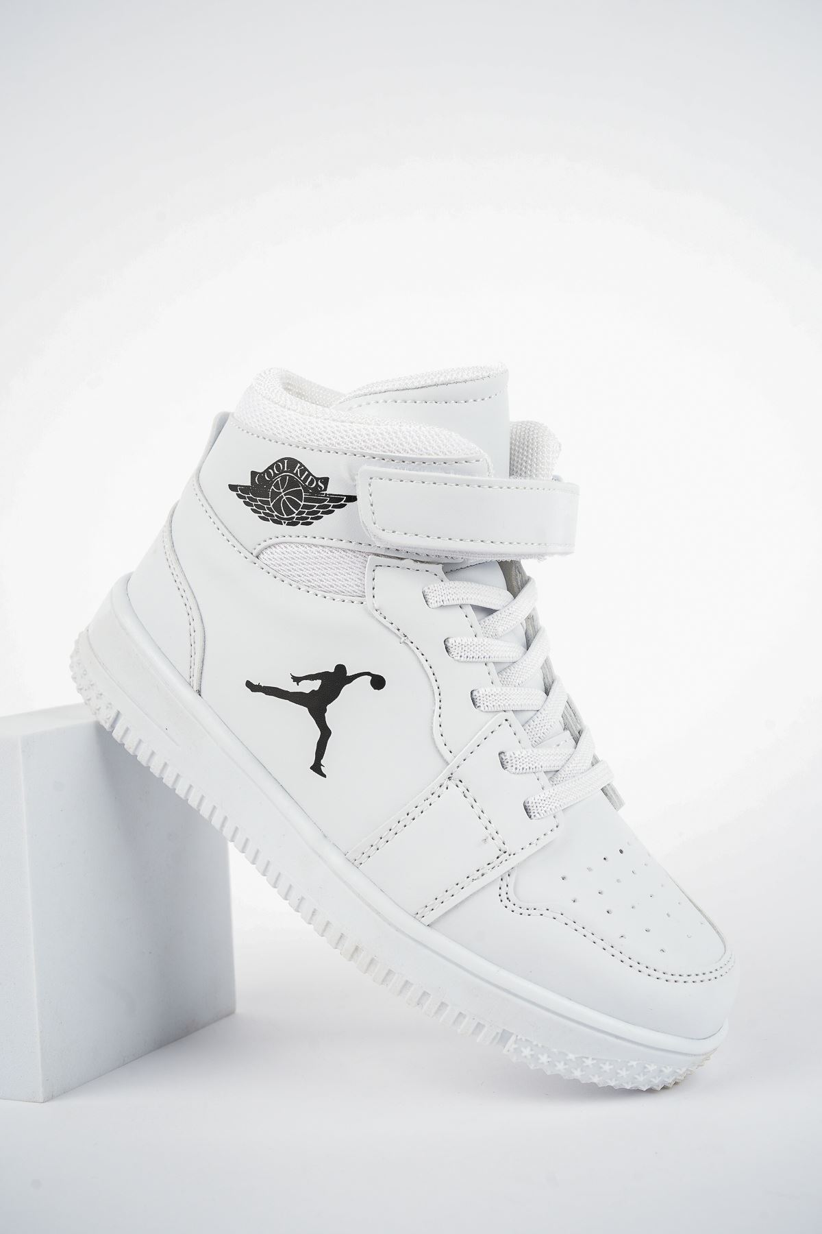 Düz Beyaz Cırtlı Çocuk Spor Ayakkabı