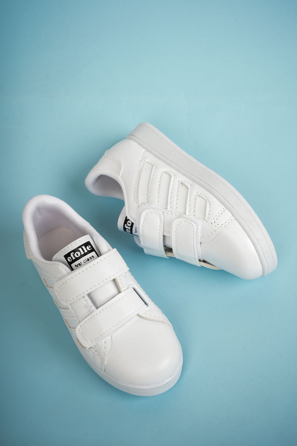 Düz Beyaz Şeritli Çocuk Spor Ayakkabı