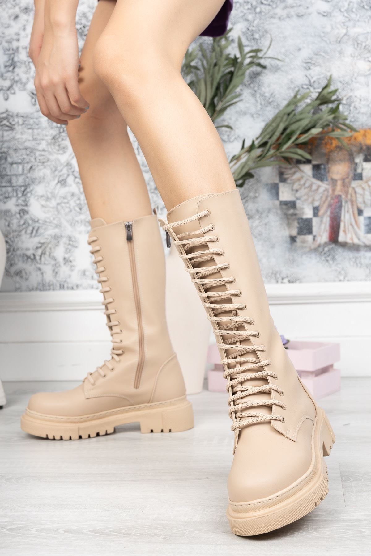 Fermuarlı Uzun Nut Cilt Postal Bot