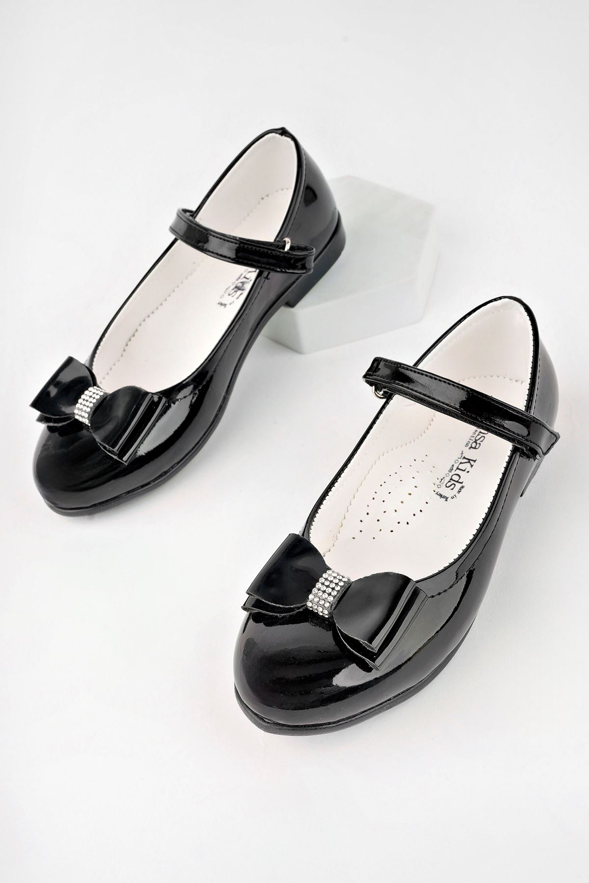 Topuklu Fiyonklu Beyaz Rugan Kız Çocuk Ayakkabı