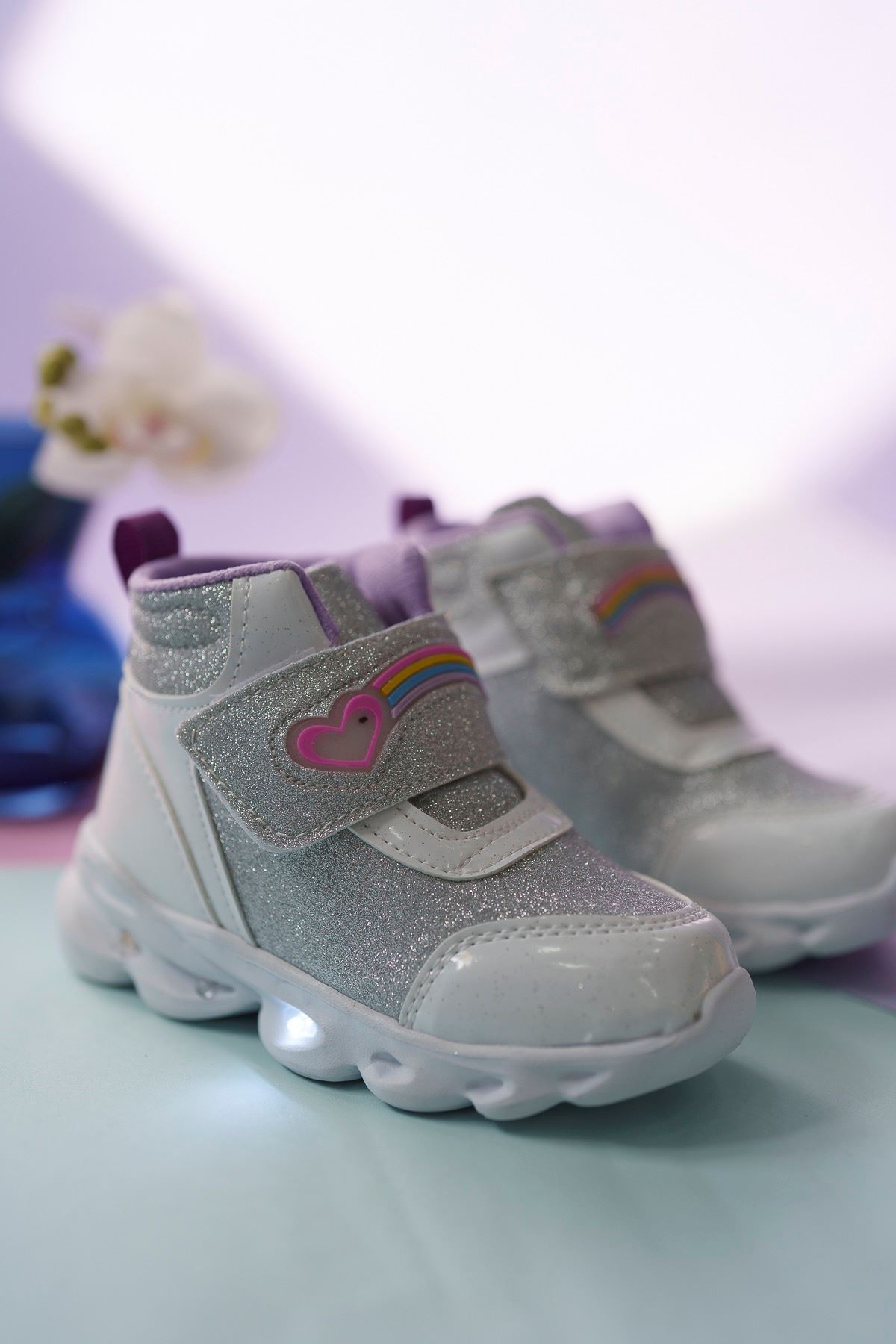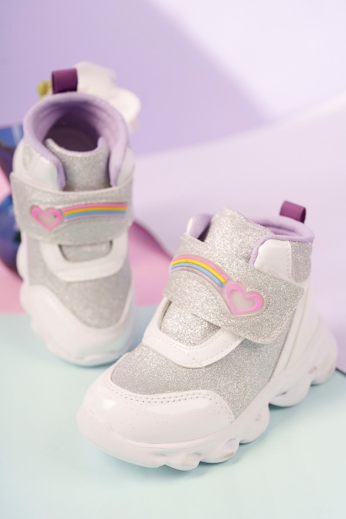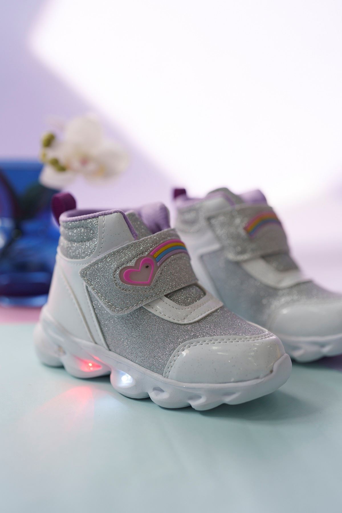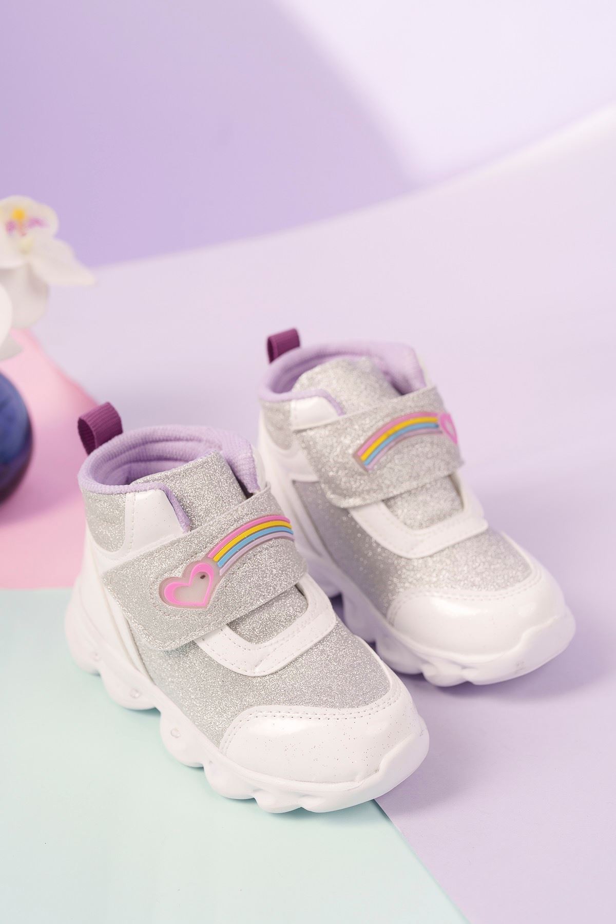 Işıklı Gümüş Simli Beyaz Çocuk Spor Bot