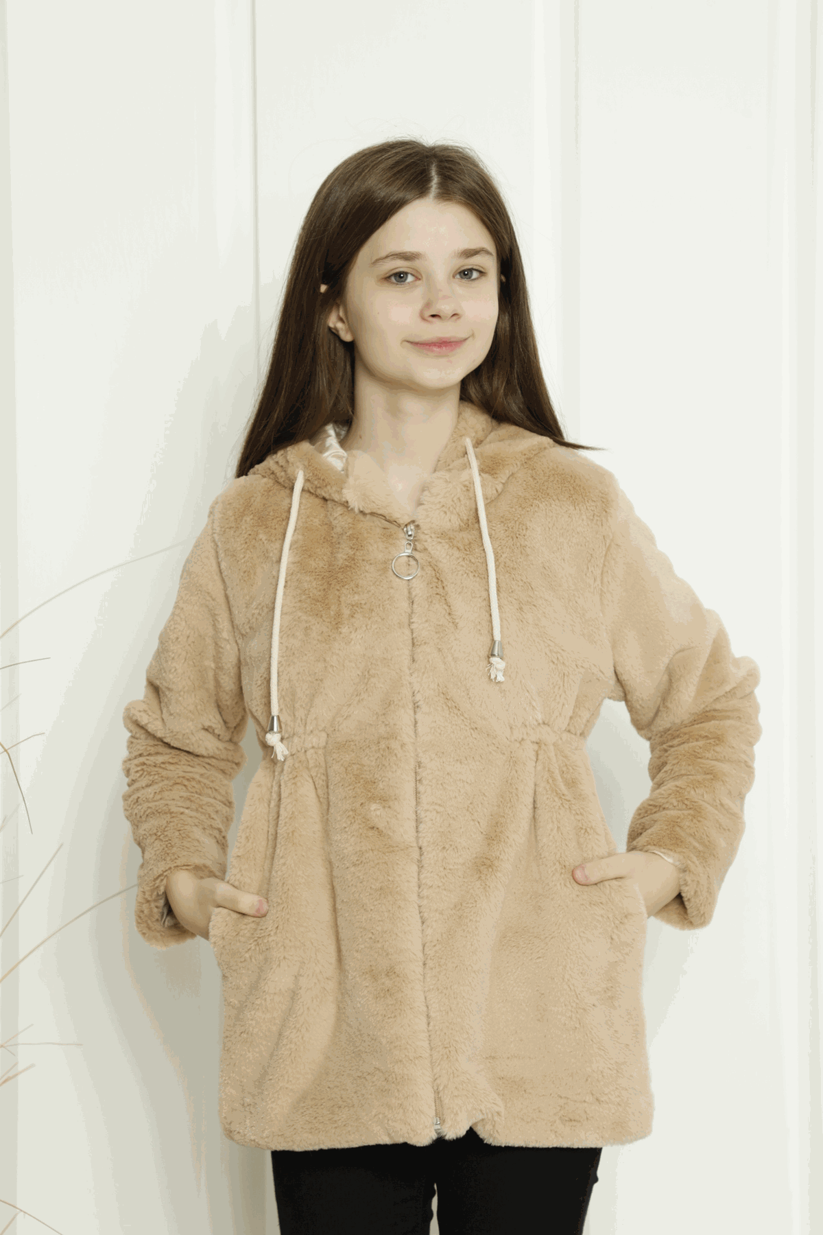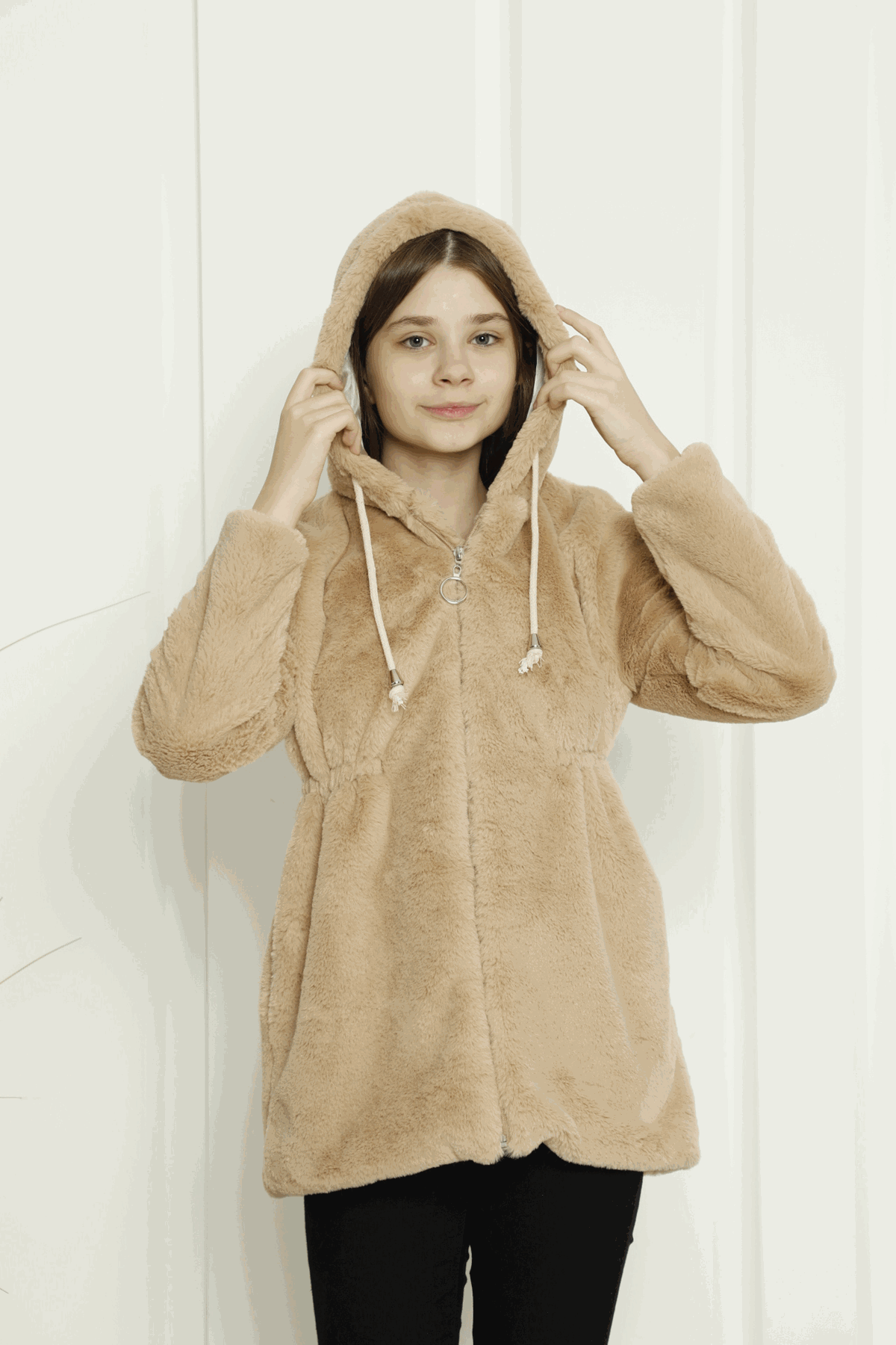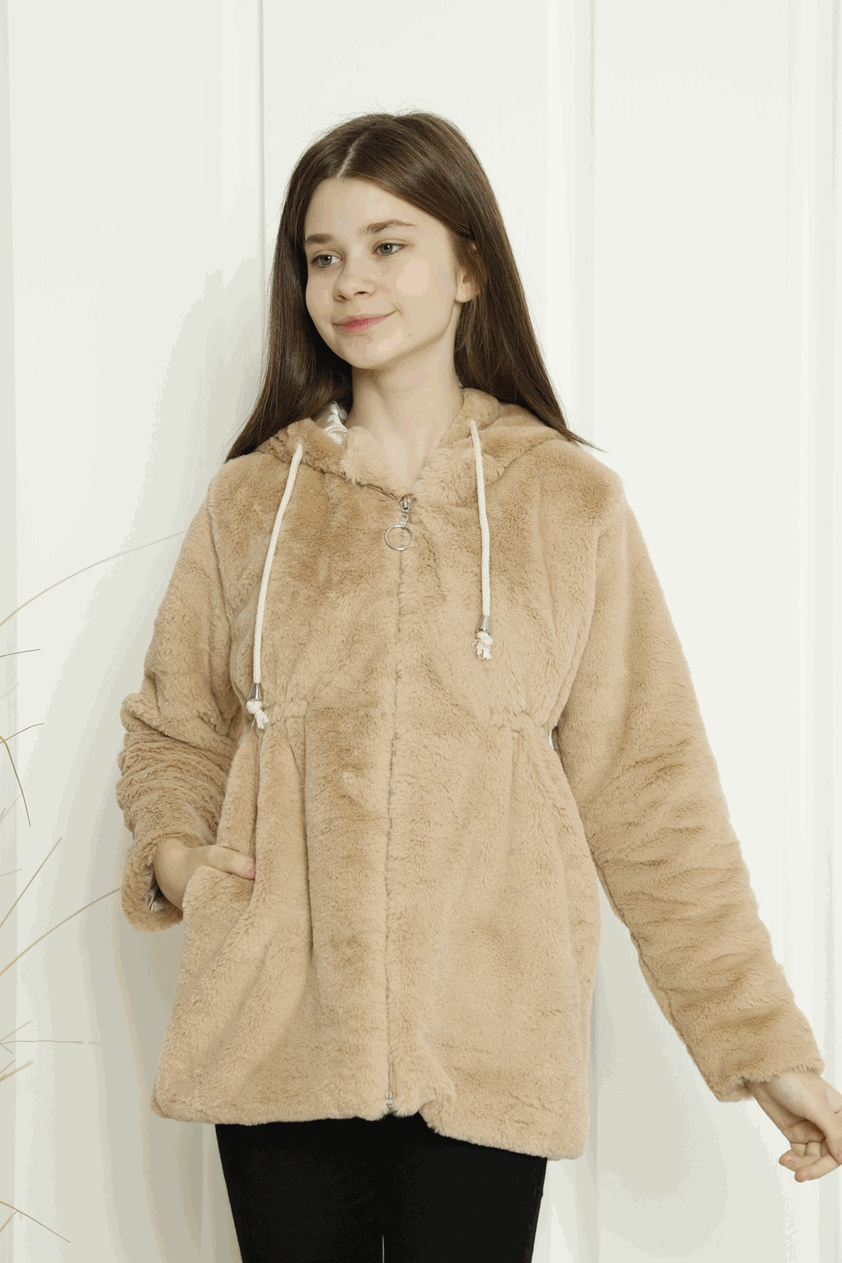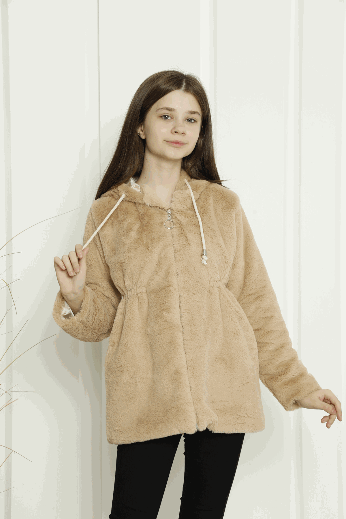 Kapşonlu Beli Büzgülü Kız Çocuk Mont