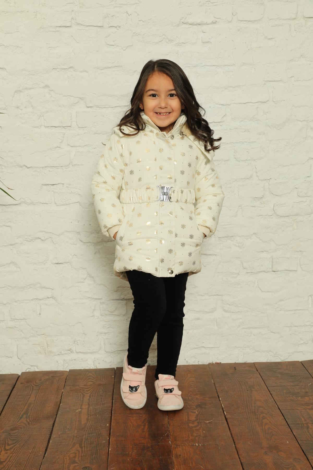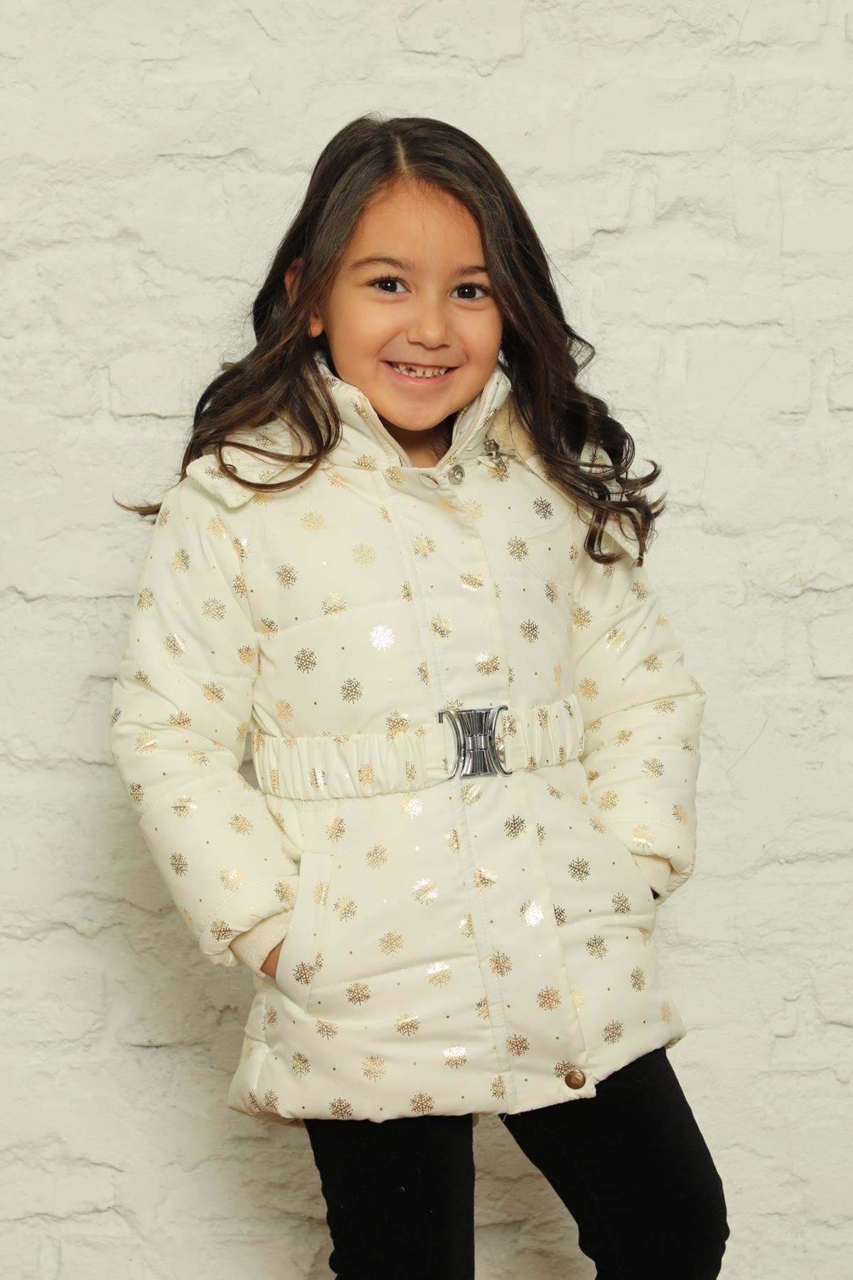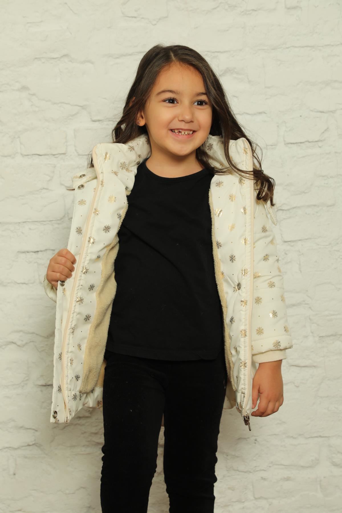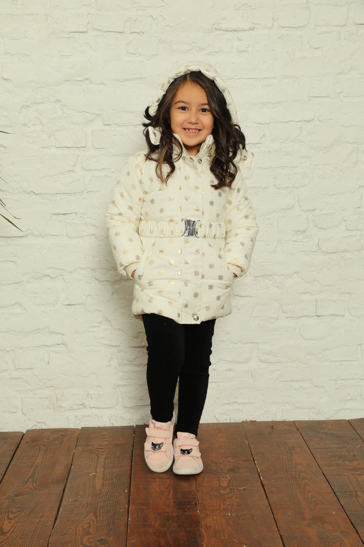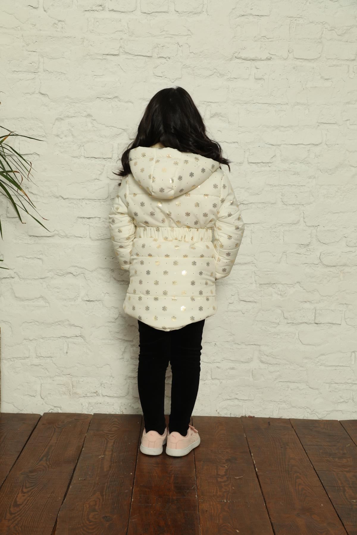 Kapşonlu İçi Polar Kar Tanesi Baskılı Şişme Mont