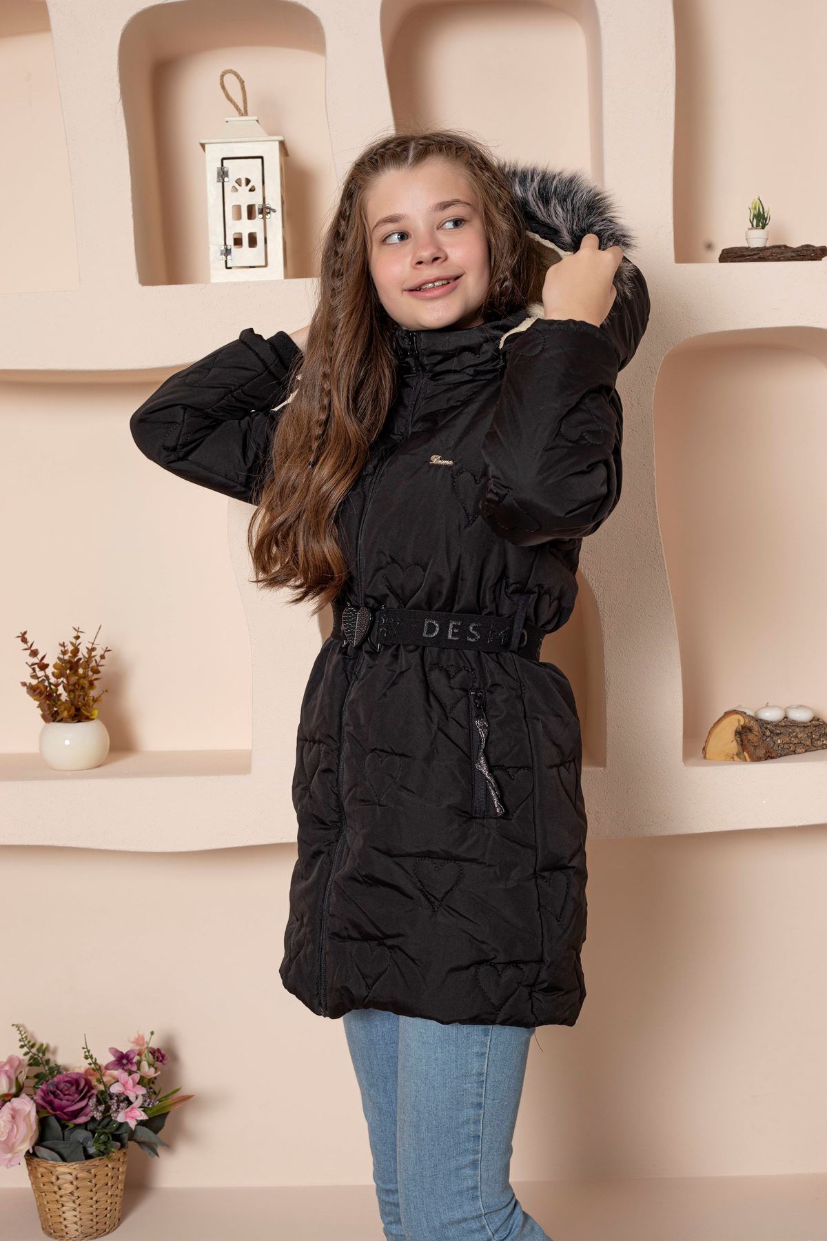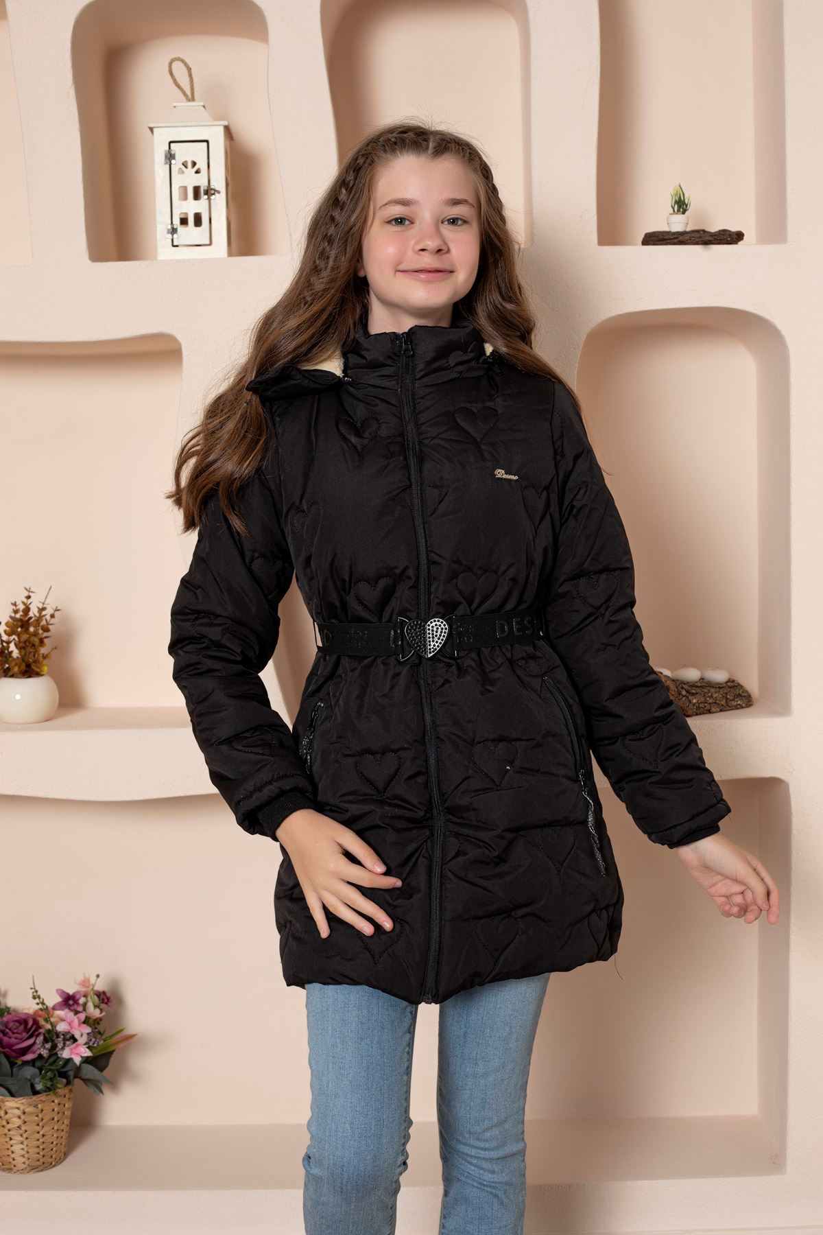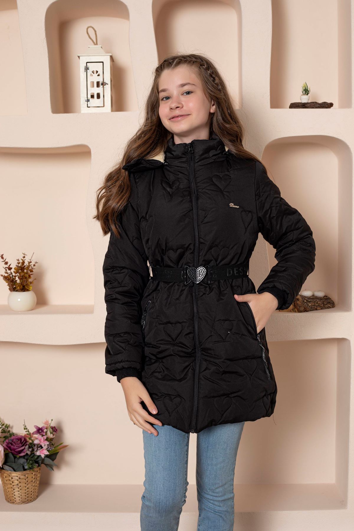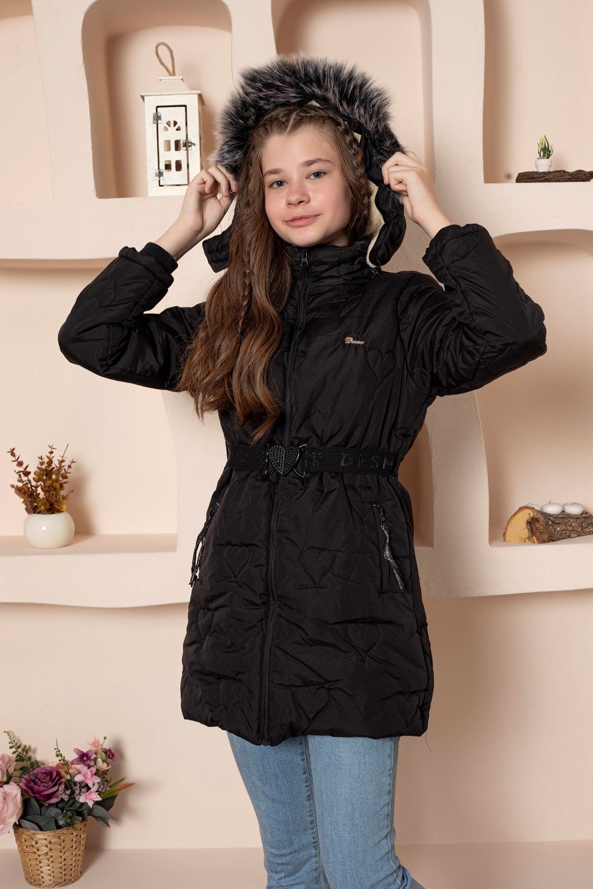 Kapşonlu İçi Yünlü Kız Çocuk Mont