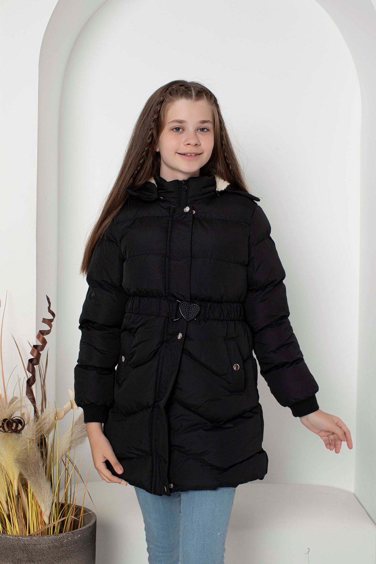 Kapşonlu İçi Yünlü Kız Çocuk Mont