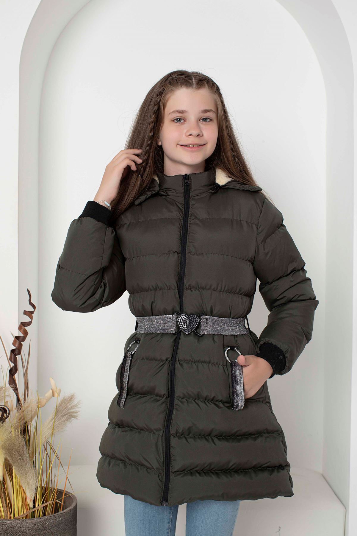 Kapşonlu İçi Yünlü Kız Çocuk Mont