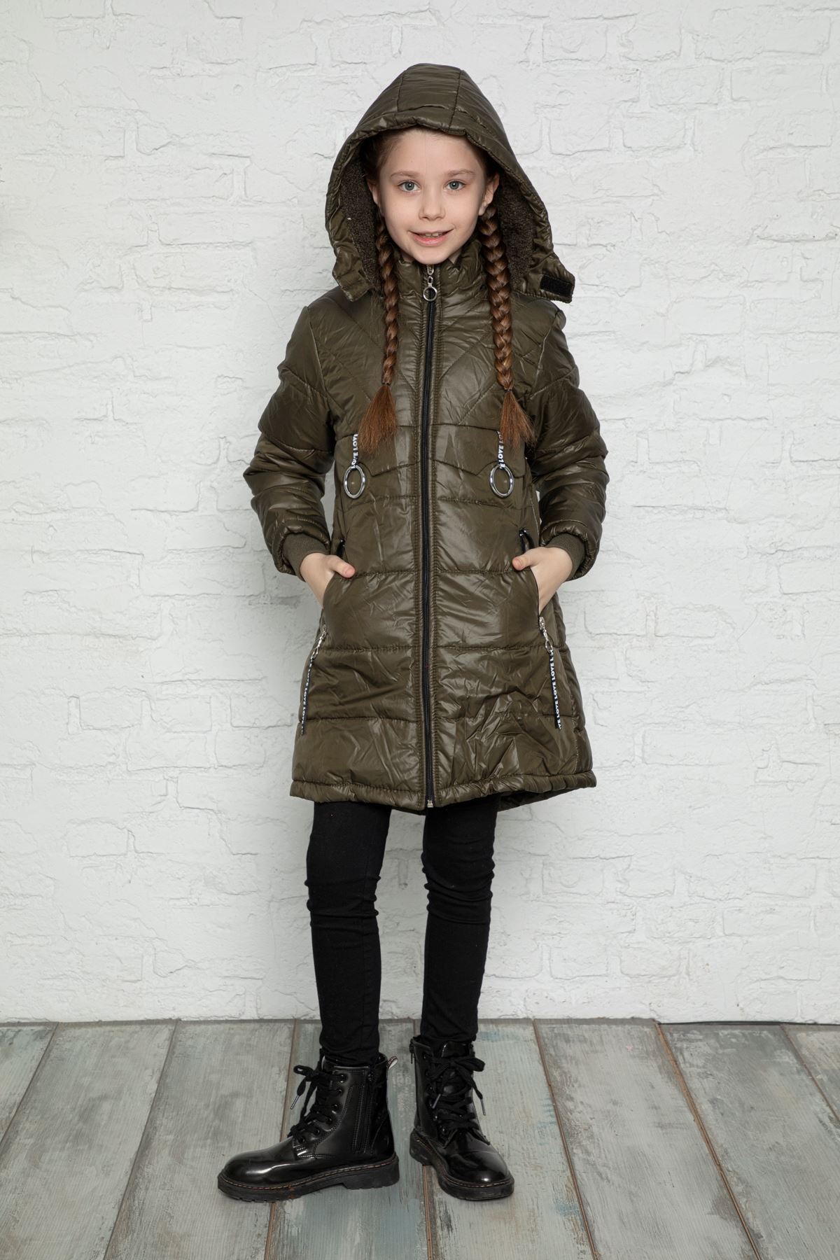 Kapşonlu İçi Yünlü Kız Çocuk Mont