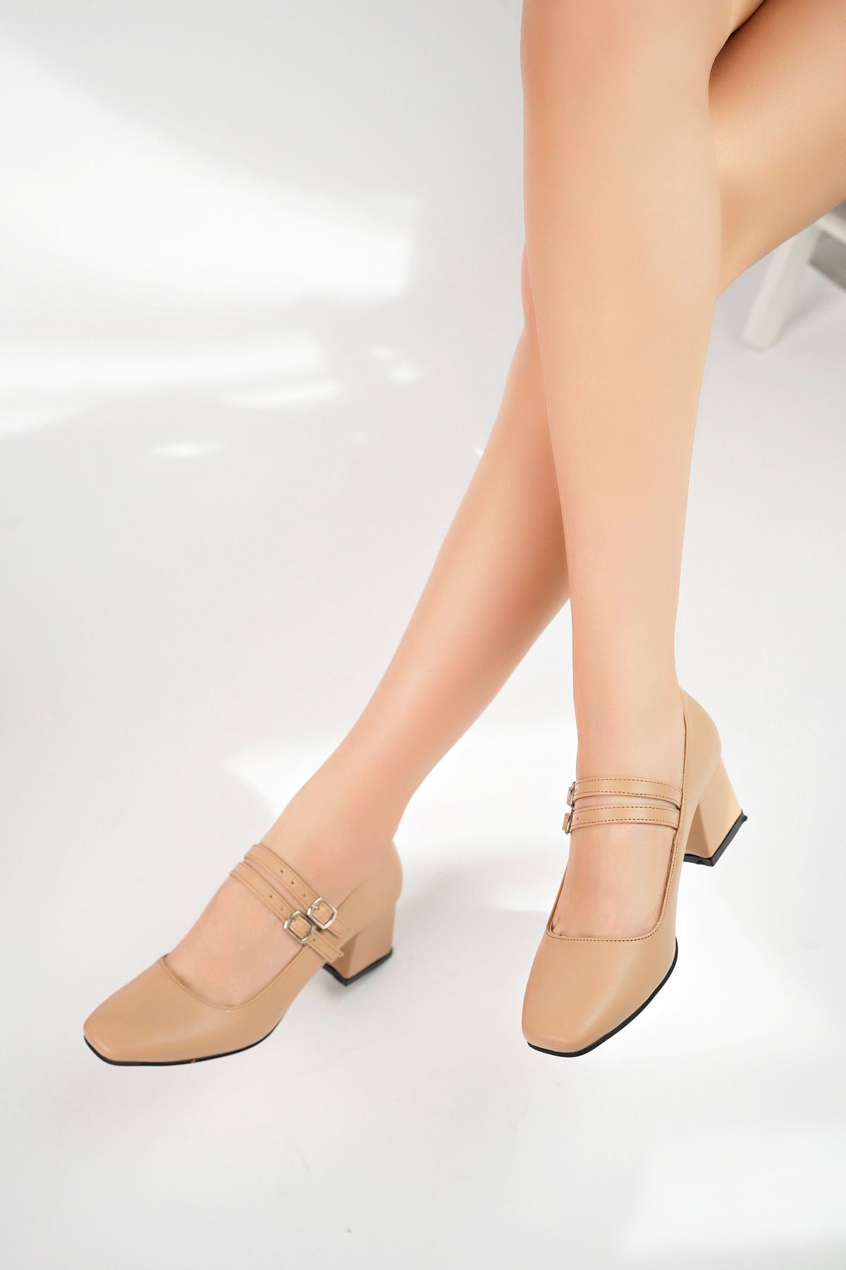 Köşeli Kalıp Nut Cilt Kadın Ayakkabı