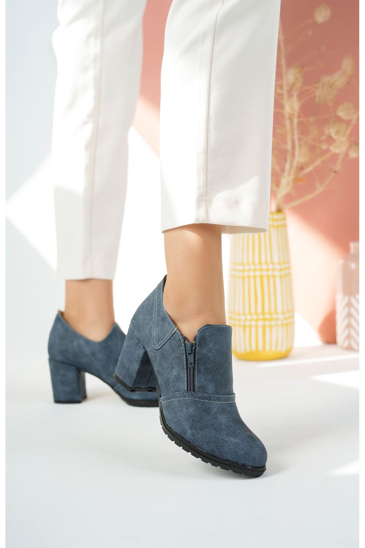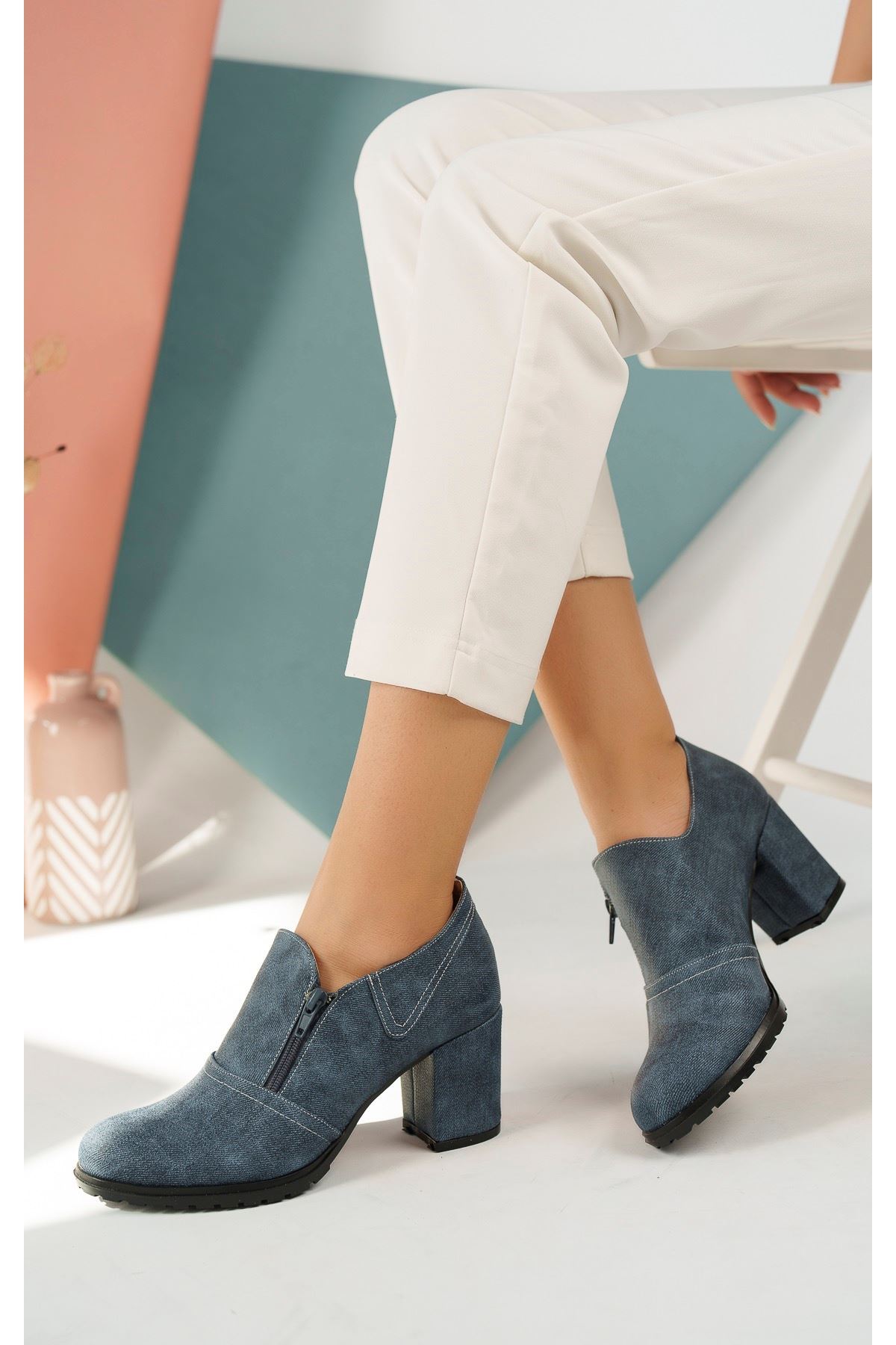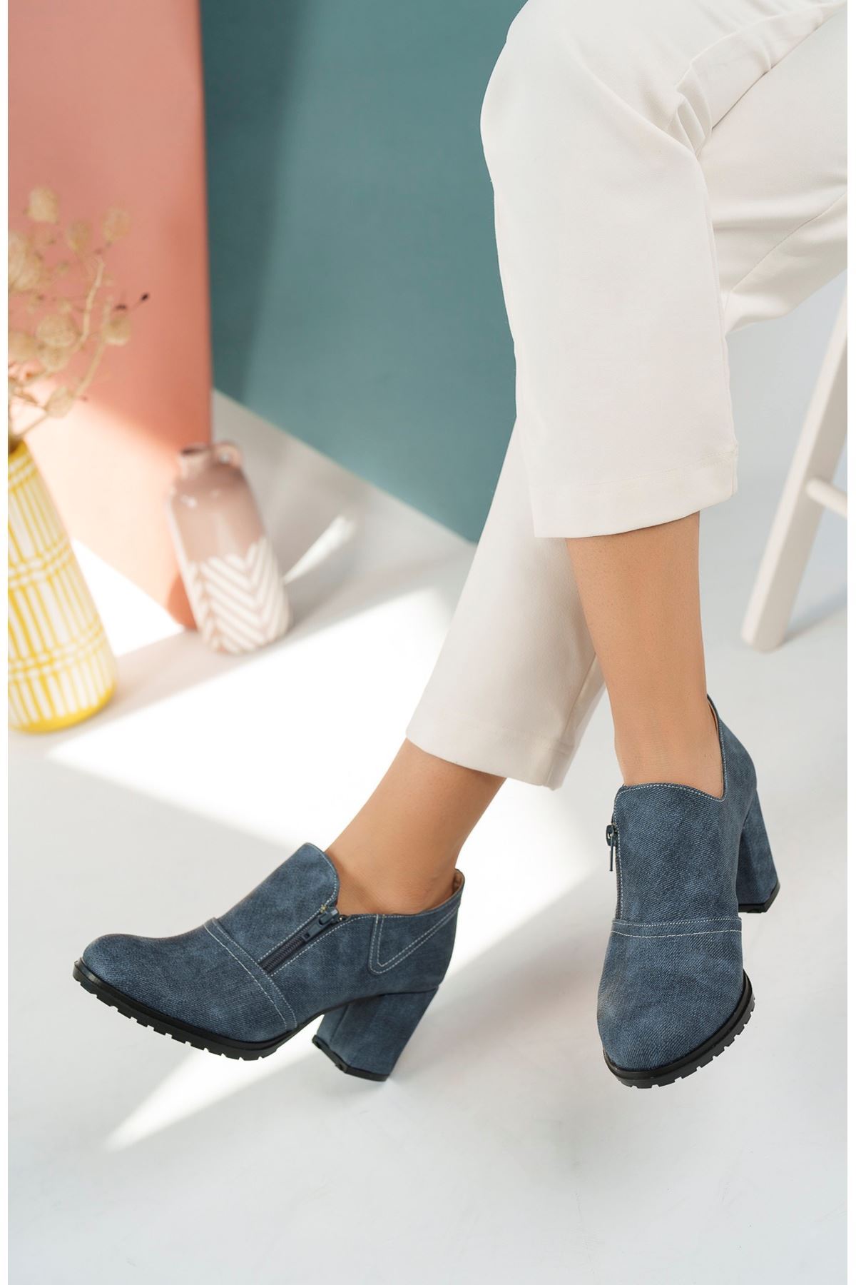 Dolgu Topuk Fermuarlı Siyah Cilt Kadın Ayakkabı