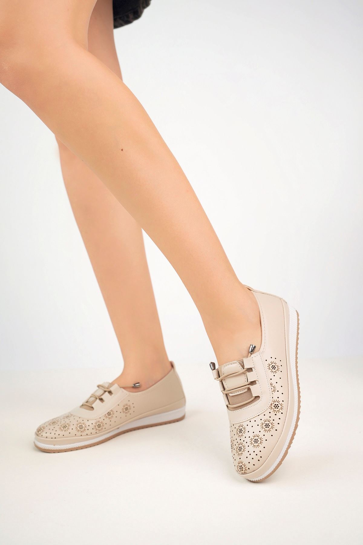 Lazerli Krem Kadın Ayakkabı