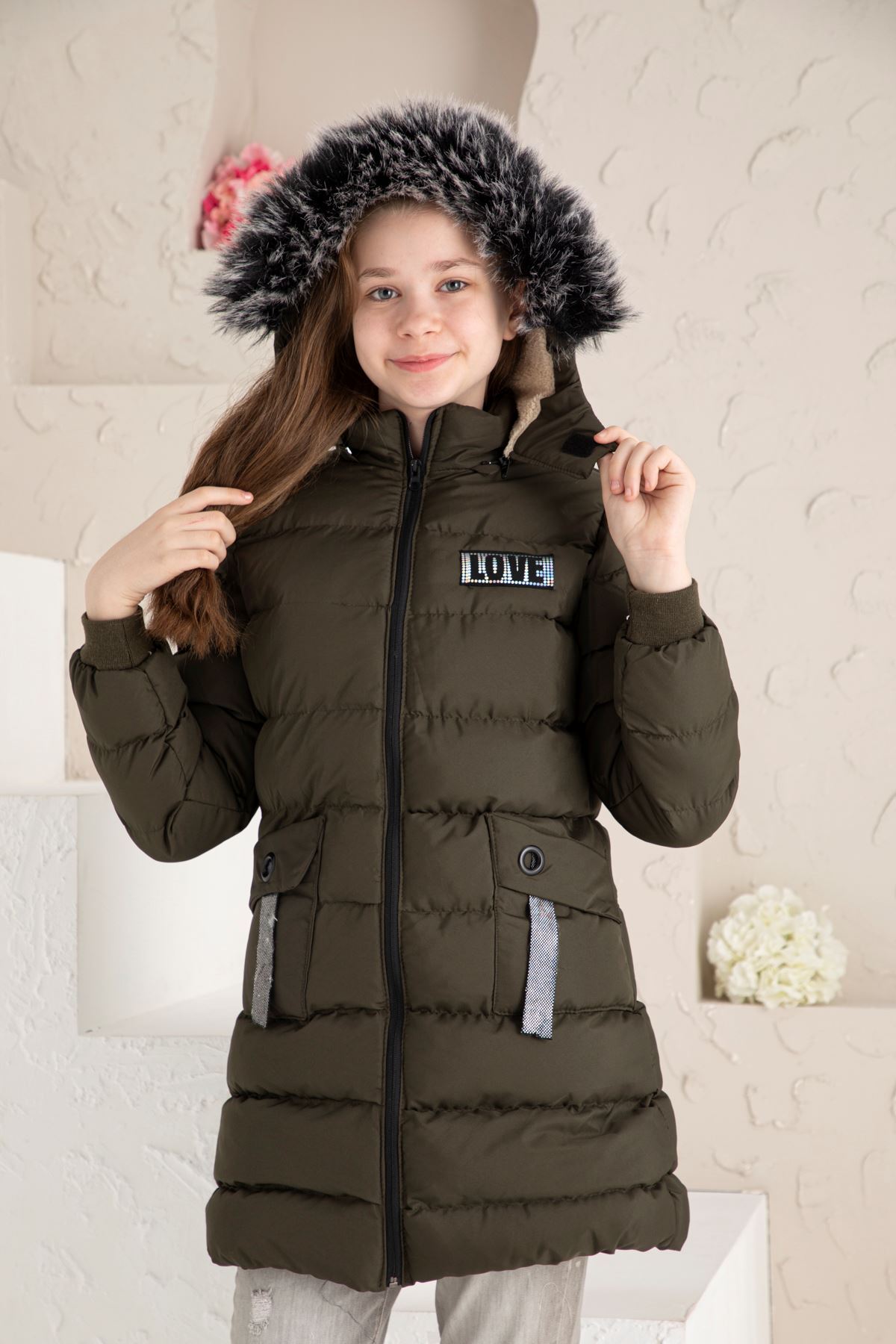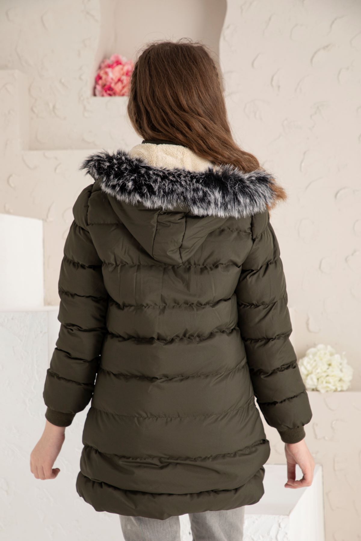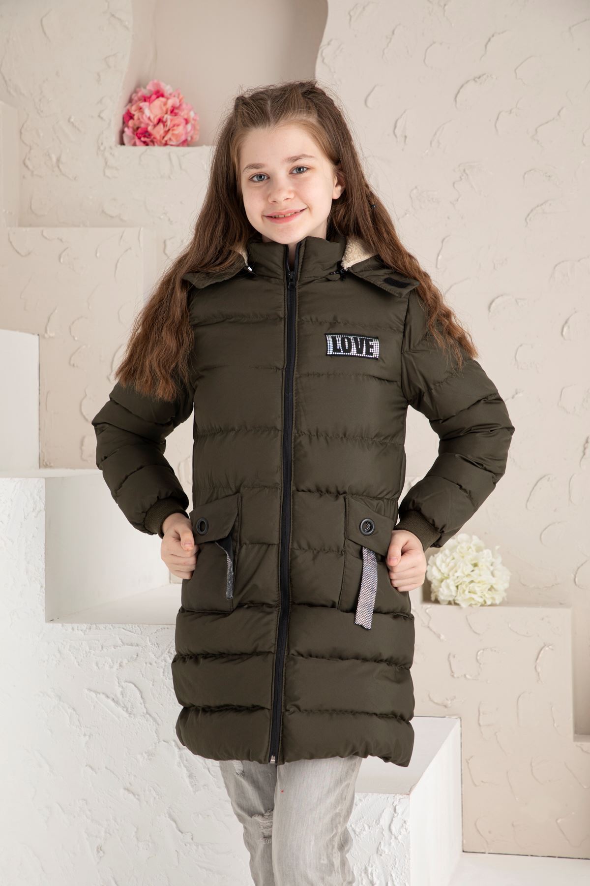 Love Baskılı İçi Yünlü Kız Çocuk Mont