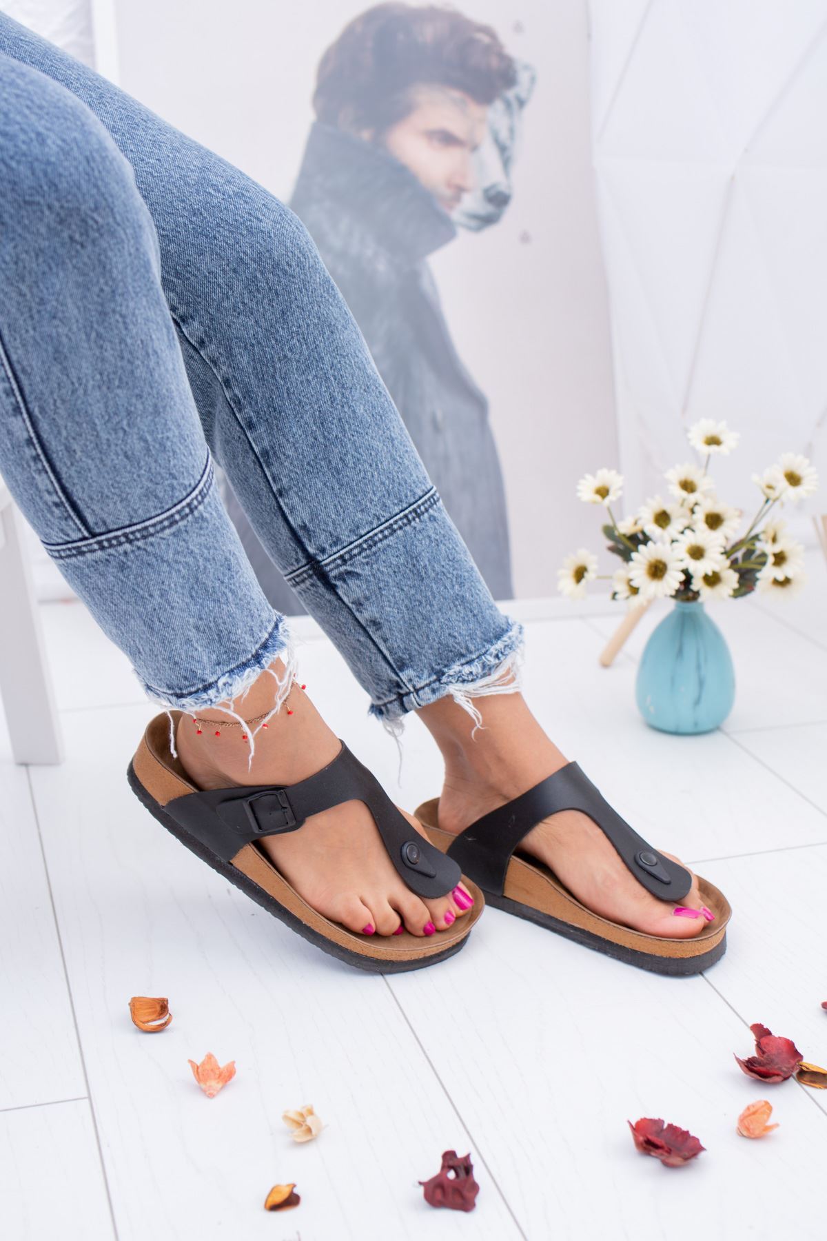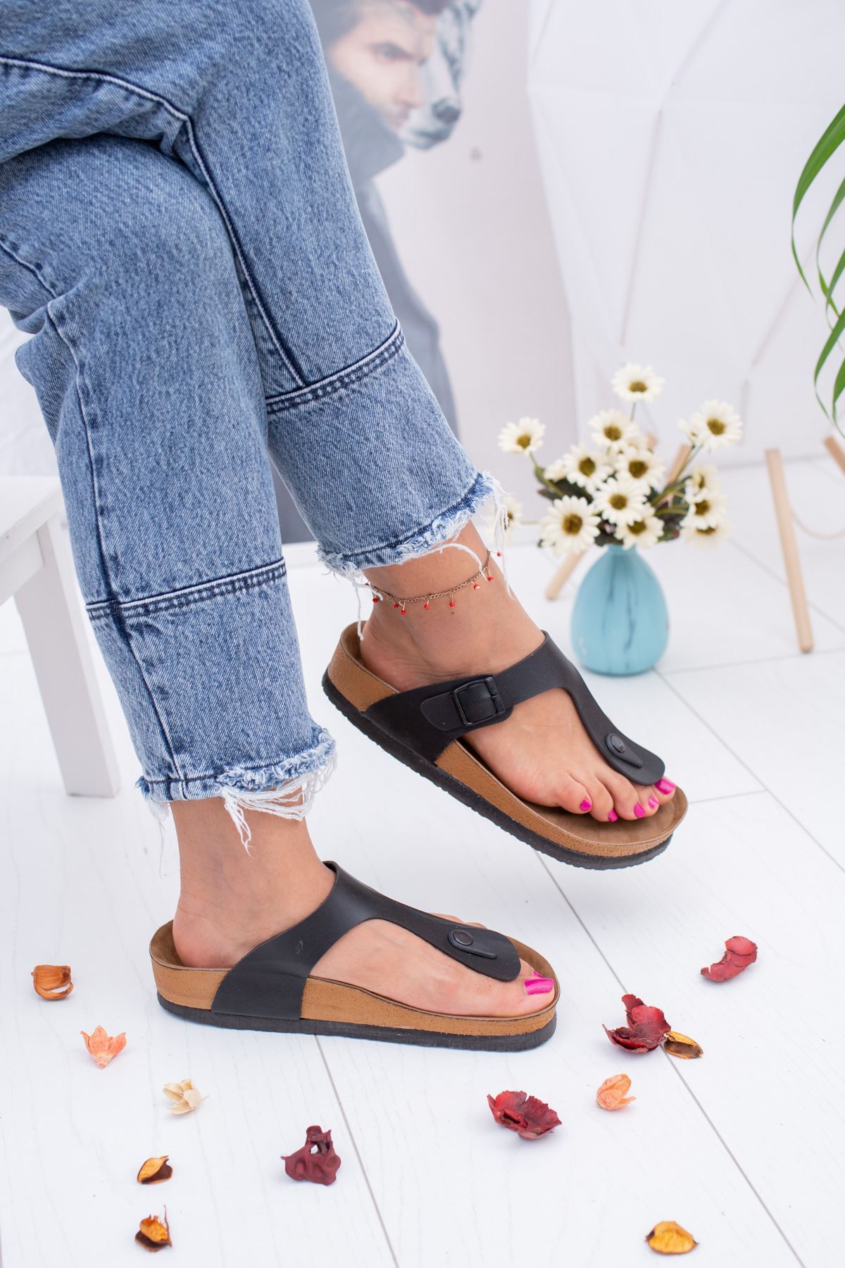 Mantar Çift Taban Parmak Arası Siyah Terlik