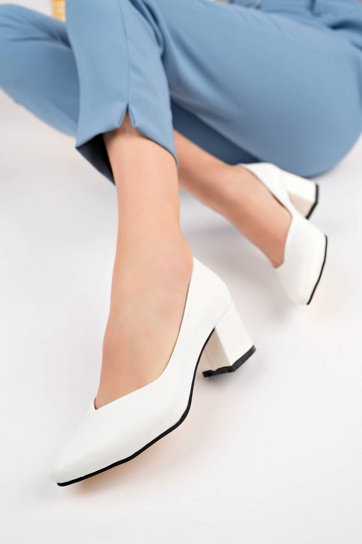 Ökçeli Sivri Kalıp Beyaz Cilt Kadın Ayakkabı