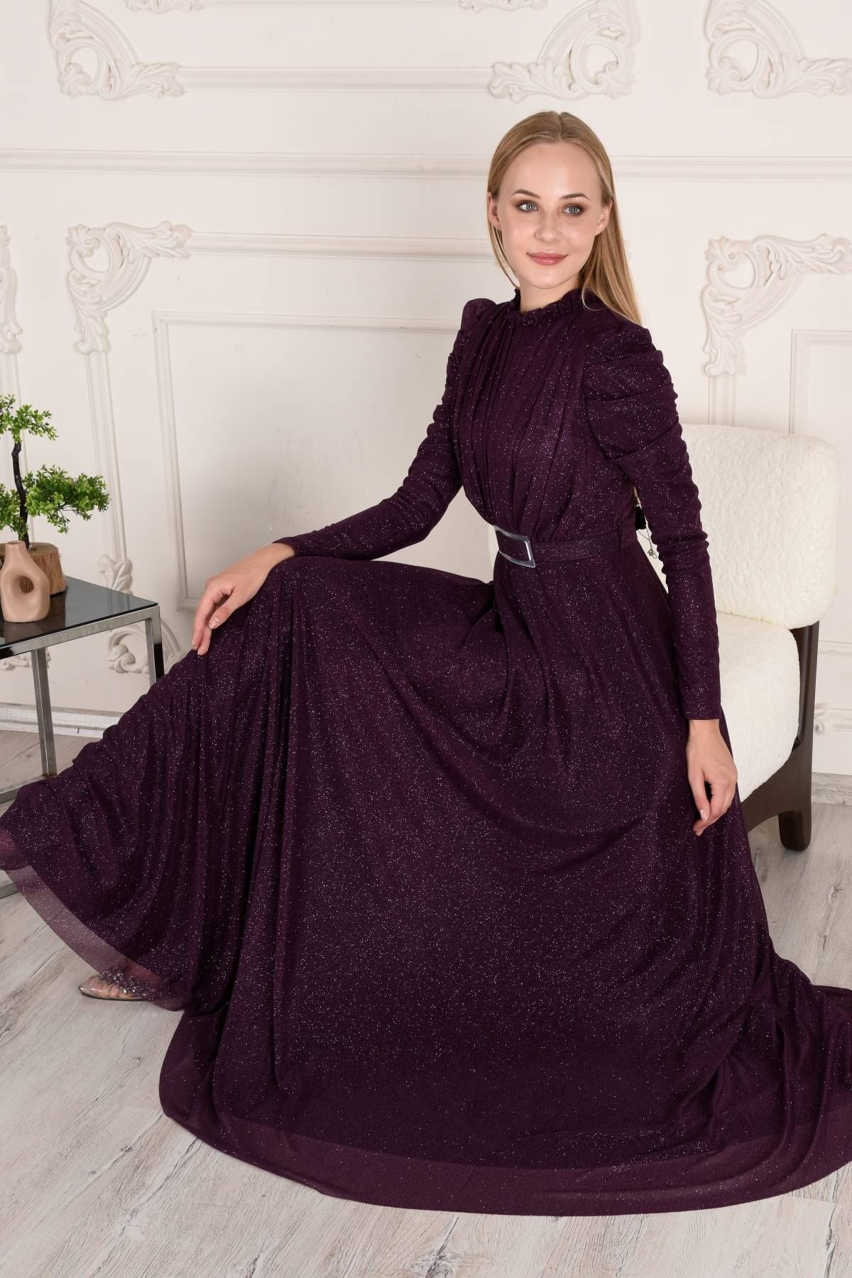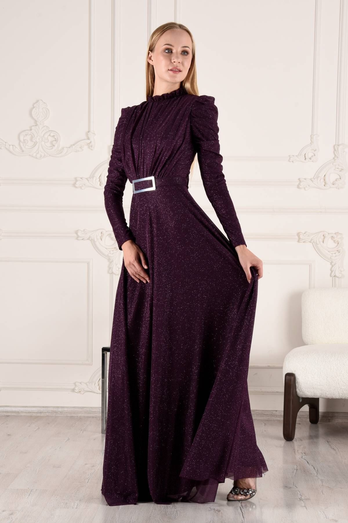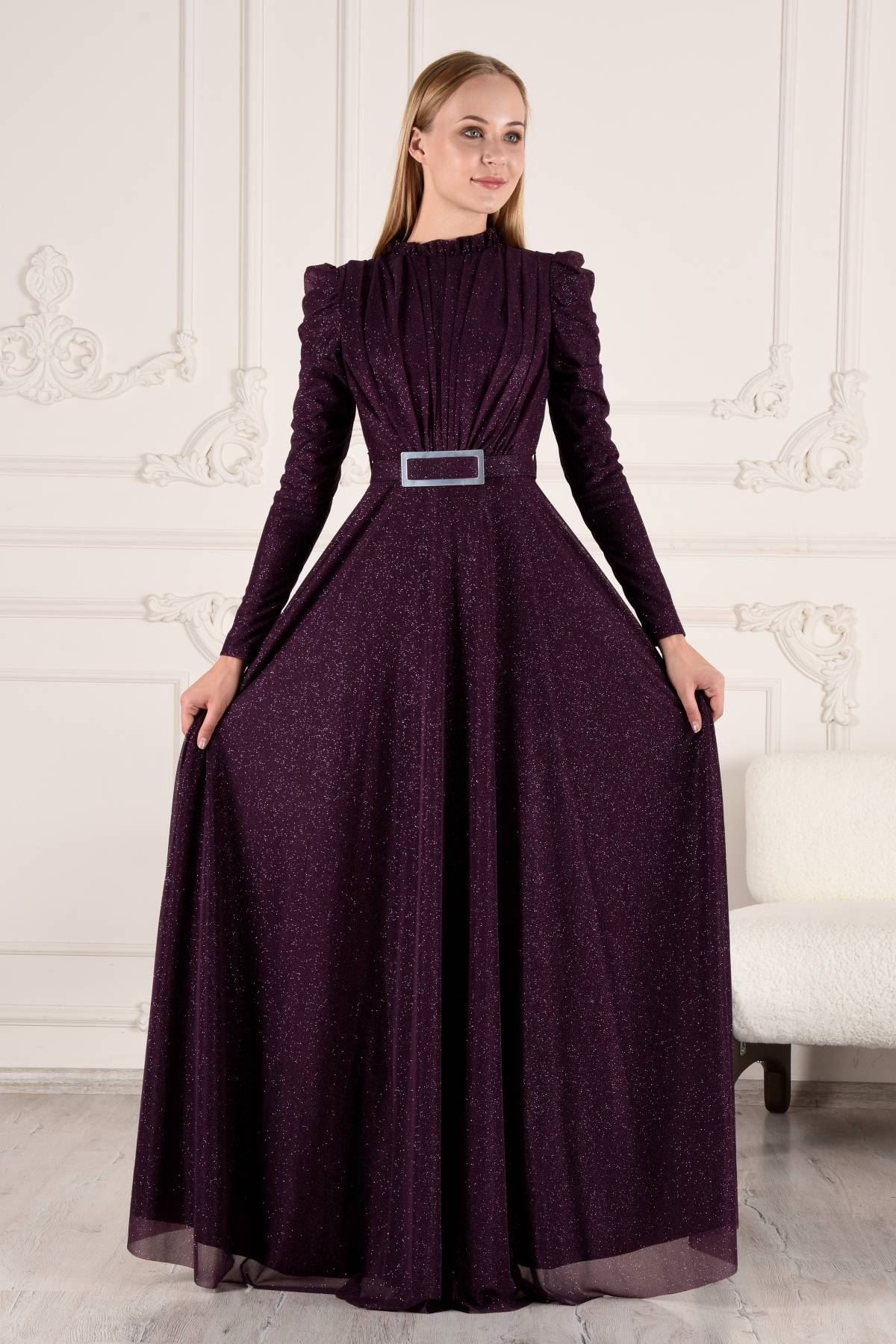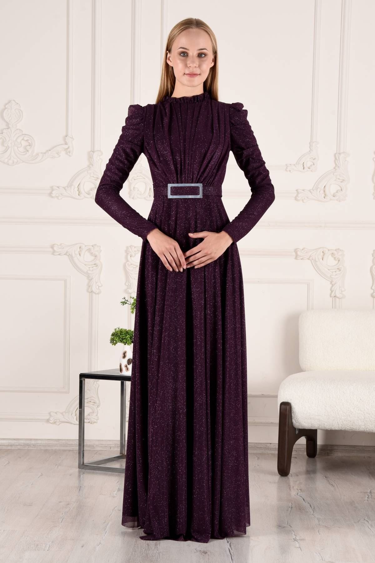 Önü Kolları Pileli Kemerli Kadın Abiye