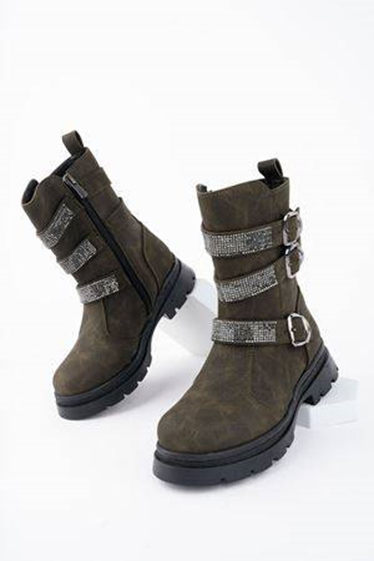 Önü Taşlı Haki Kız Çocuk Bot