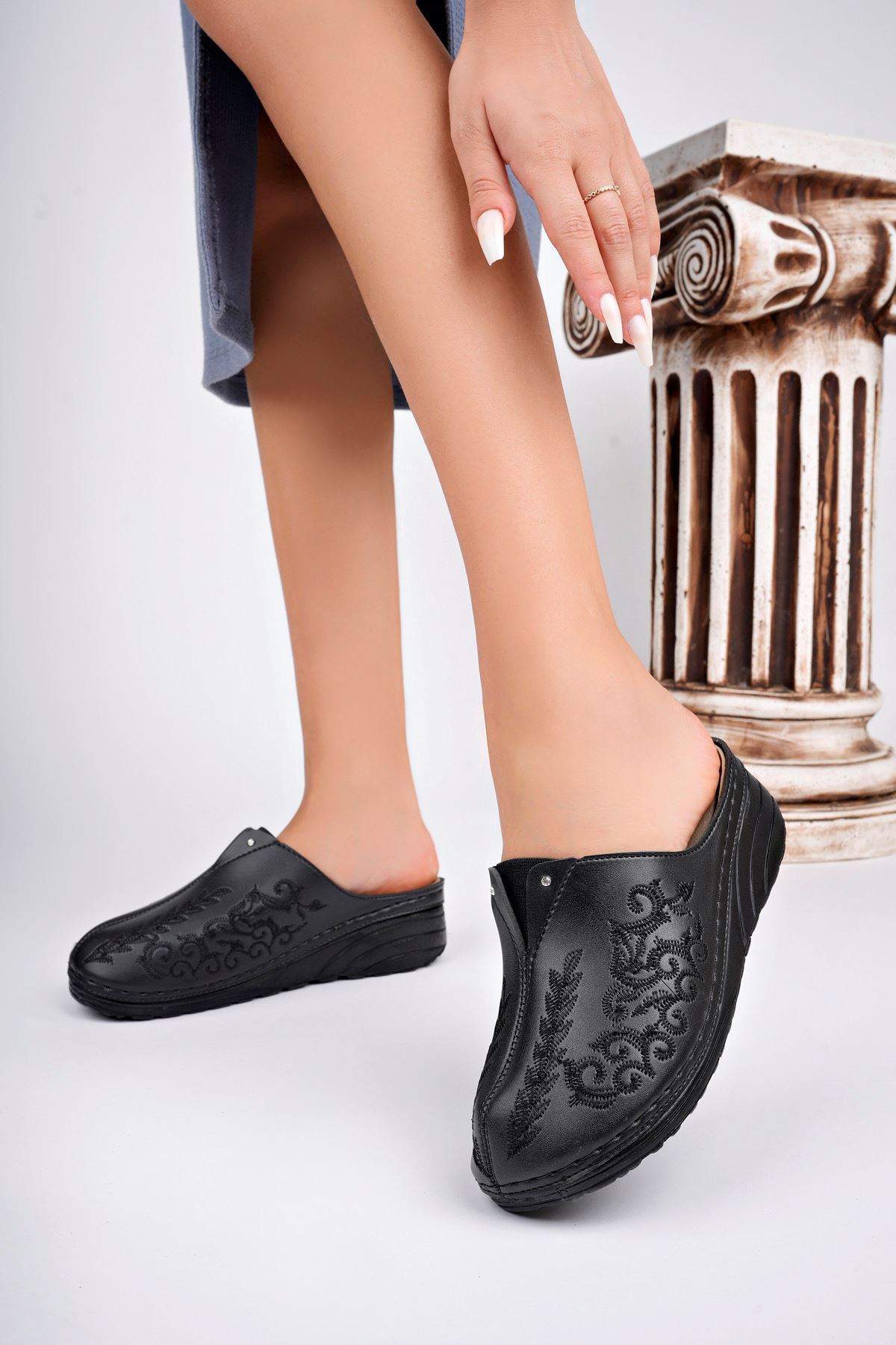 Ortapedik Ped Burnu Kapalı Nakışlı Terlik