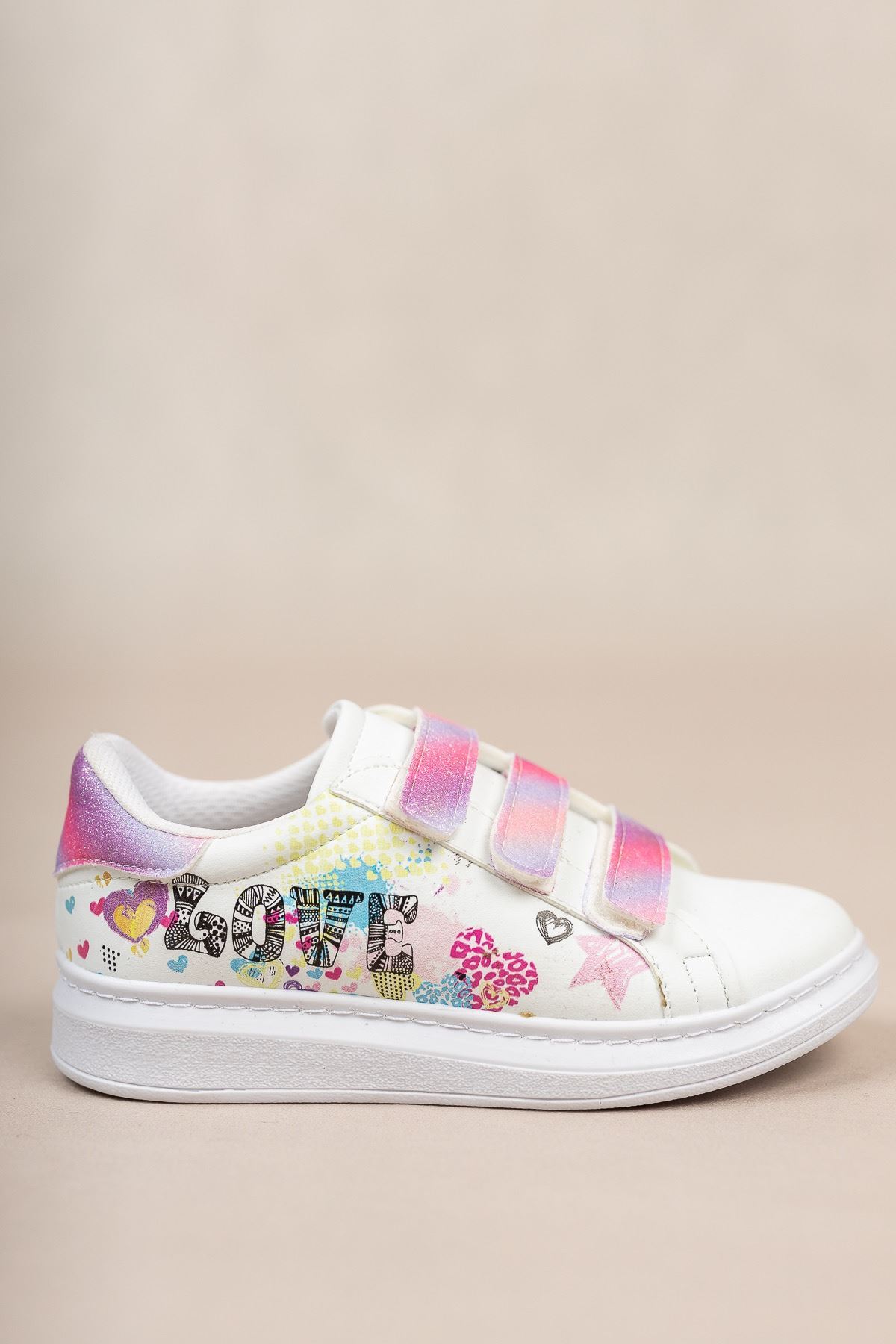 Baskılı Beyaz Garnisi Kırmızı Çocuk Ayakkabı